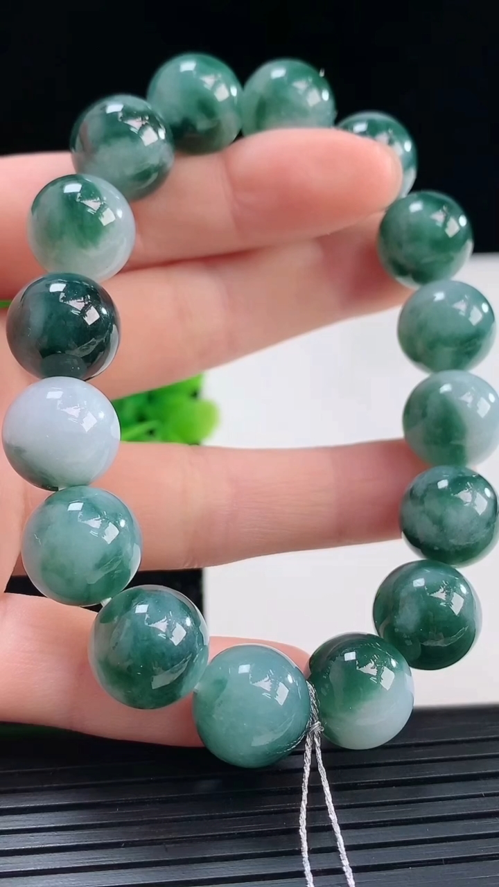 天然A货翡翠飘花圆珠手串尺寸12.3-16颗重量:55.27g3月31日 工厂直销收藏佳品,种好水足