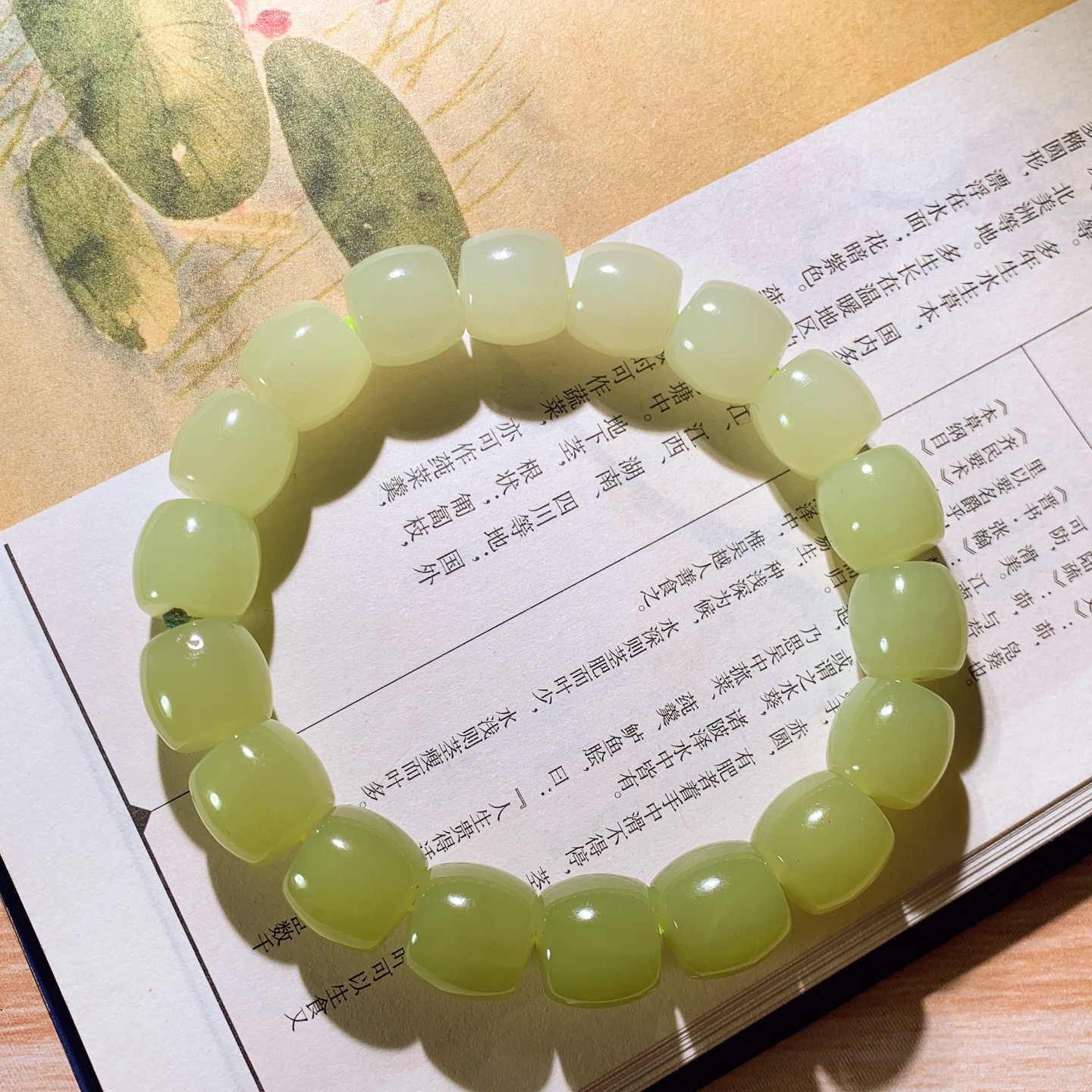 新疆和田玉若羌黄口料直切手串!单颗尺寸11重51克 玉质细腻油润 底色纯净 脂粉好,品质好。lt26