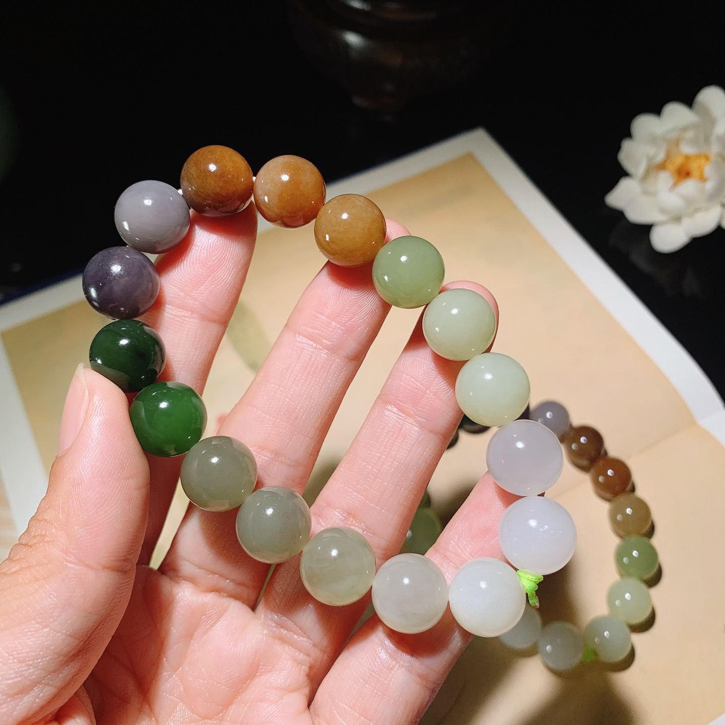 新疆和田玉且末糖多宝圆珠手串 且末糖手串 单颗尺寸12!玉质细腻油润。手推出油。品相大气 lt260