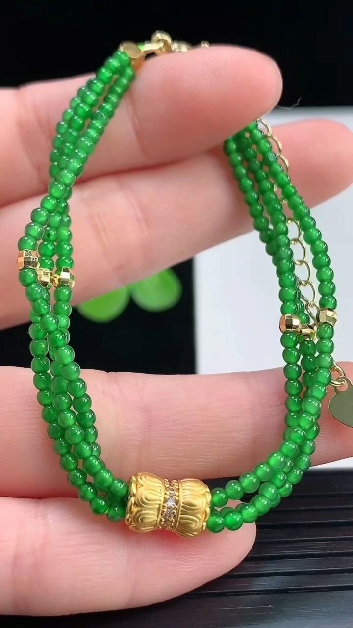 天然A货翡翠三排小米珠手串尺寸2.2重量:6.65g4月7日 工厂直销收藏佳品,种好水足,色泽均匀,