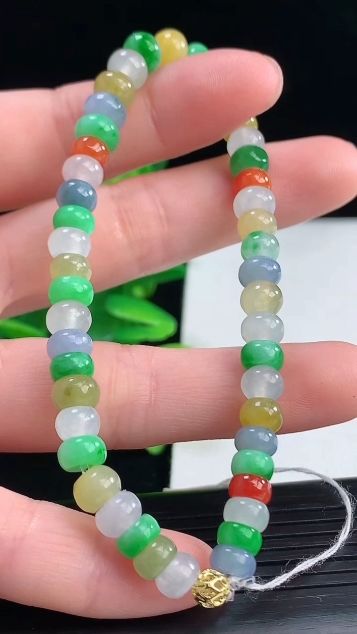 天然A货翡翠算盘珠手串尺寸3.8-2重量:6.59g4月10日 工厂直销收藏佳品,种好水足,色泽均匀
