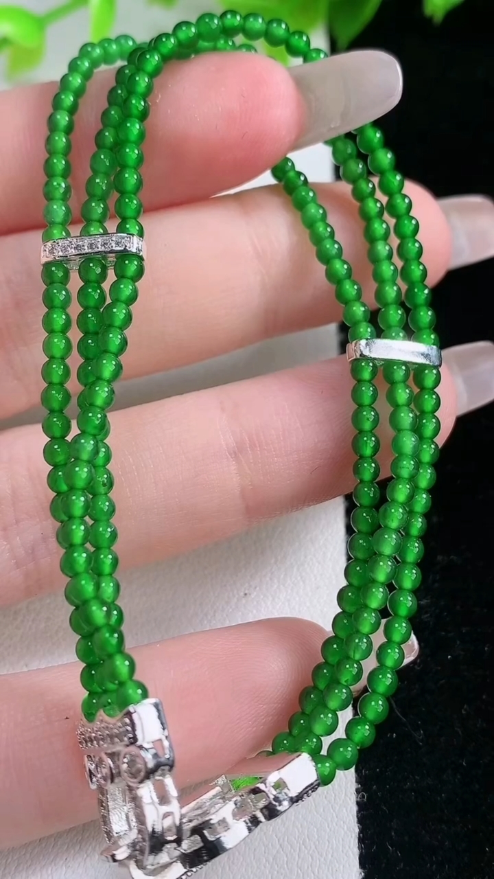 天然A货翡翠小米珠三排手串,尺寸2.4,重量:9.17g4月9日 工厂直销收藏佳品,种好水足,色泽均
