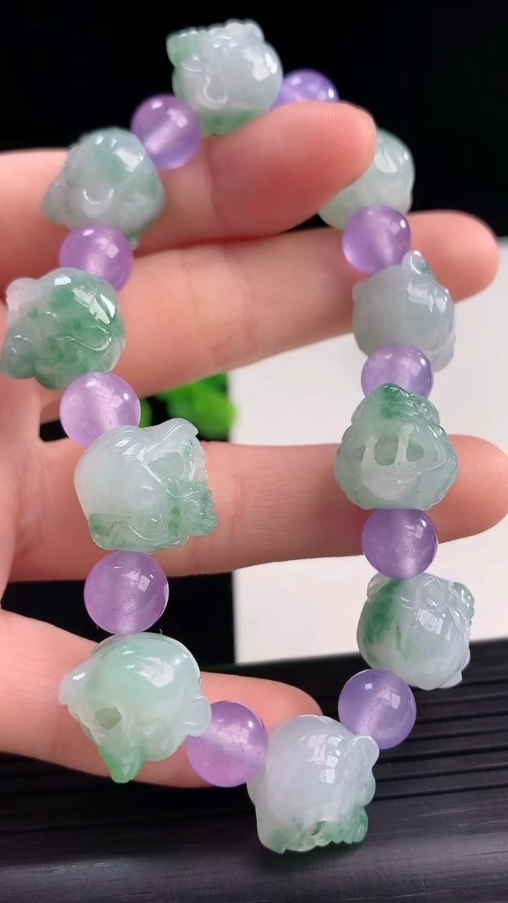 天然A货翡翠飘花狼头手串尺寸12.1-12.9-13.2重量:41.97g4月10日 工厂直销收藏佳
