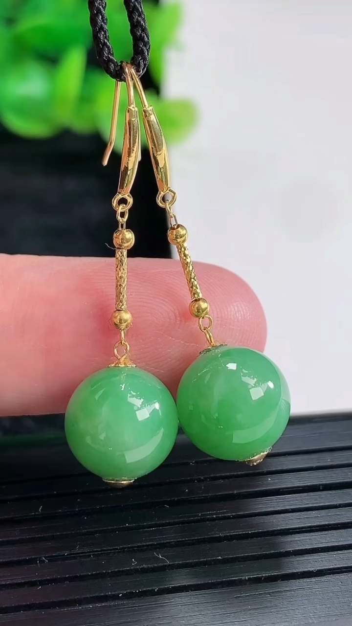 天然A货翡翠圆珠耳坠一对尺寸10.5重量:4.48g4月17日 工厂直销收藏佳品,种好水足,色泽均匀