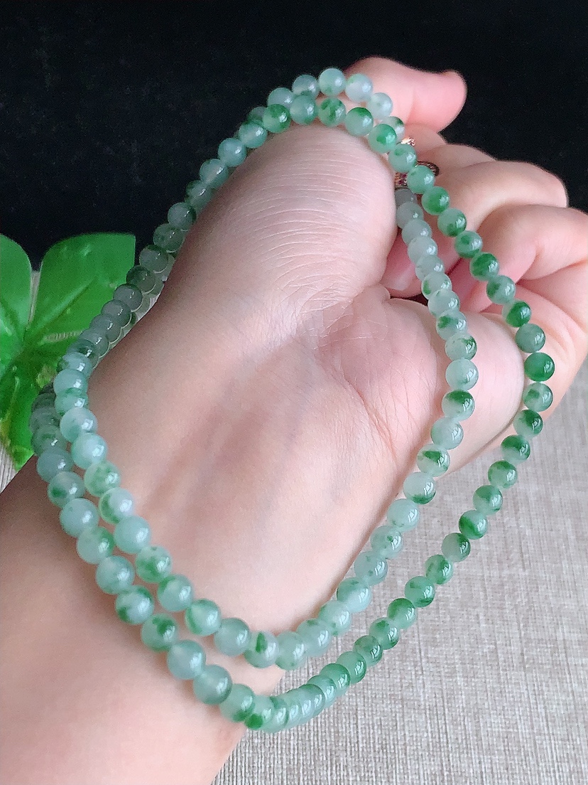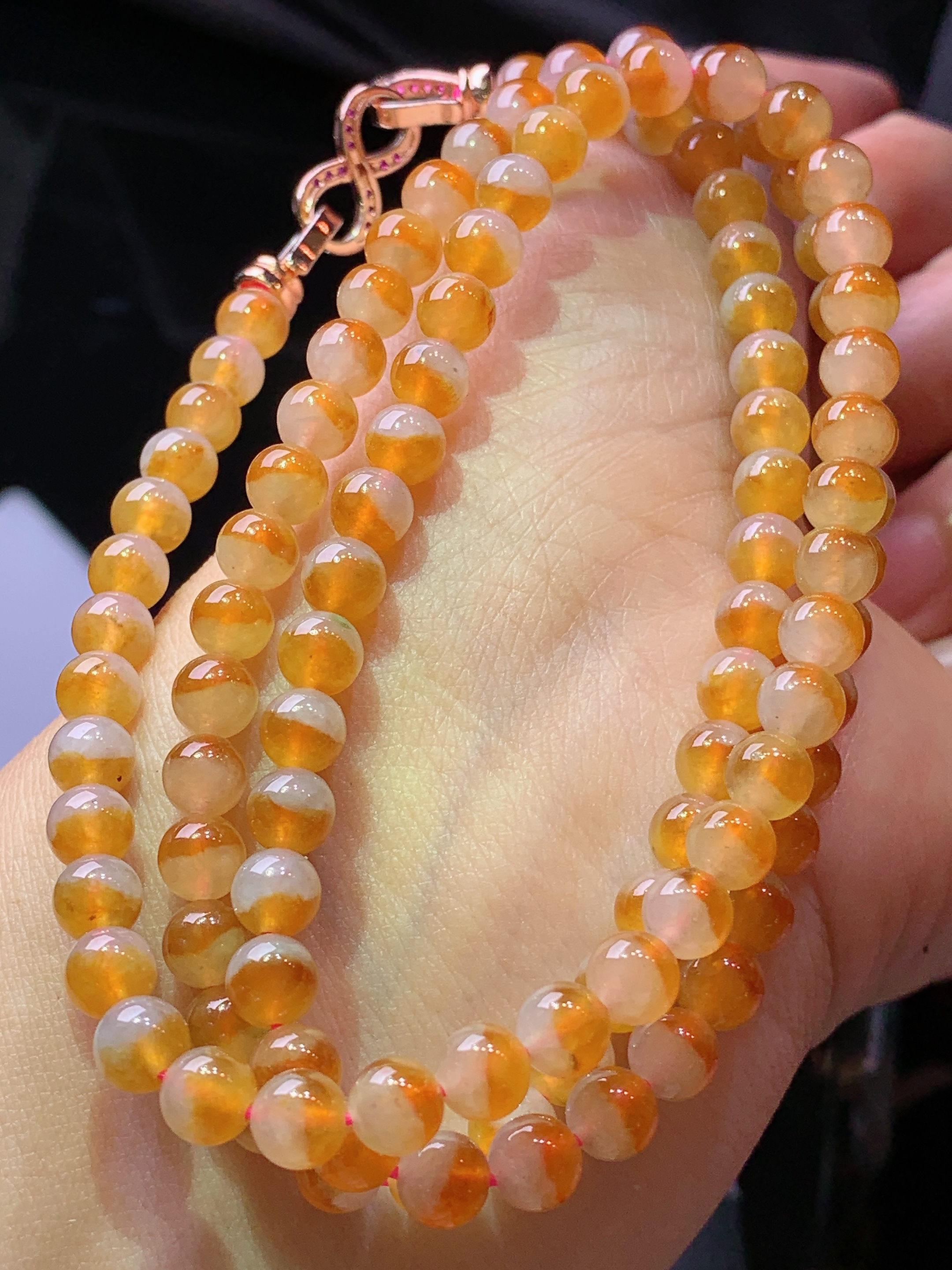 黄翡圆珠项链 玉质细腻 色泽艳丽清新 水润亮眼 整体尺寸5.5c5