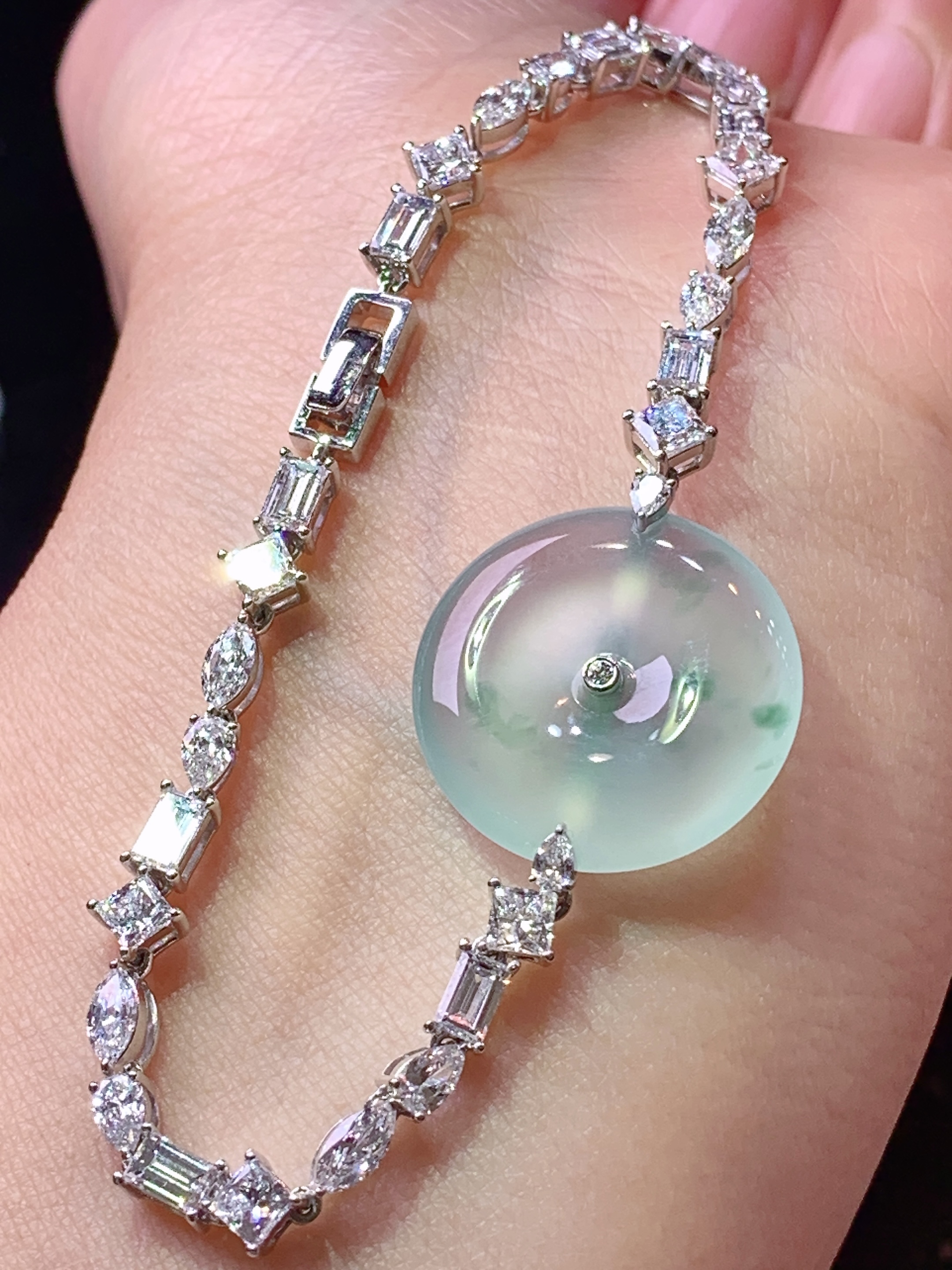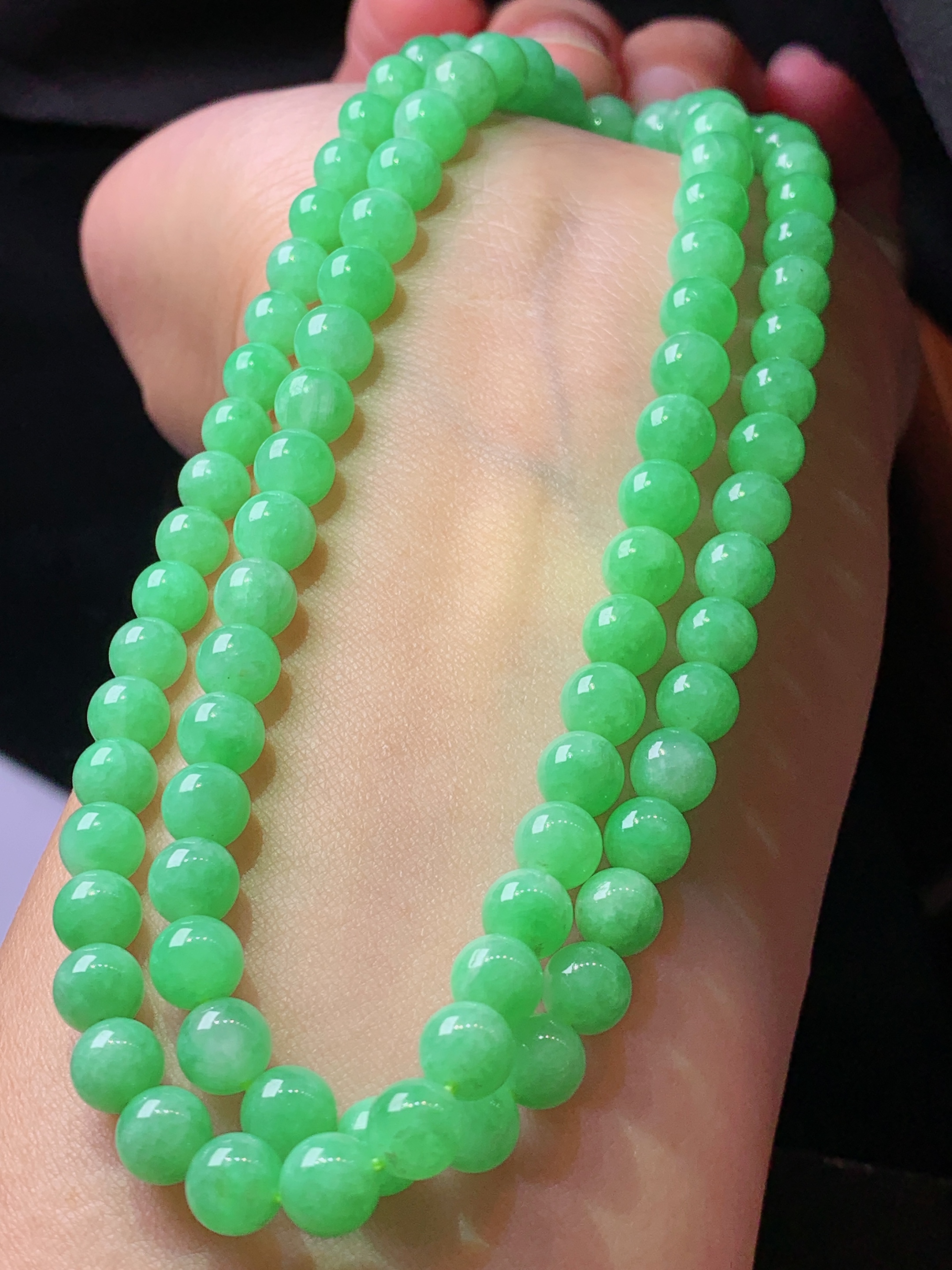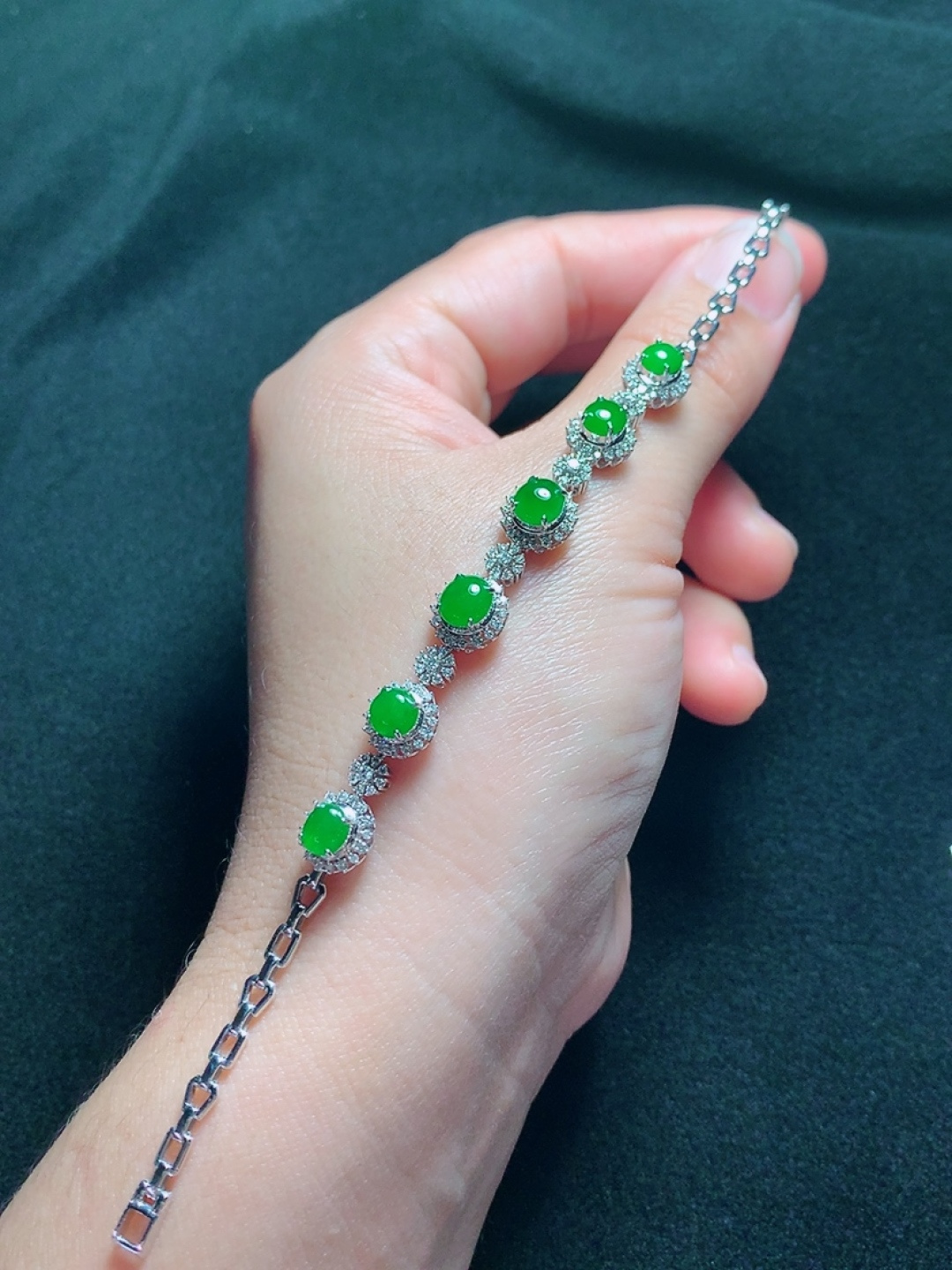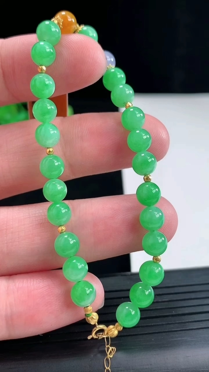 ️18k金镶嵌冰种阳绿蛋面手链,种老水头好,又冰又润,饱满:9.3/8.8/7.2mm裸石:6.1