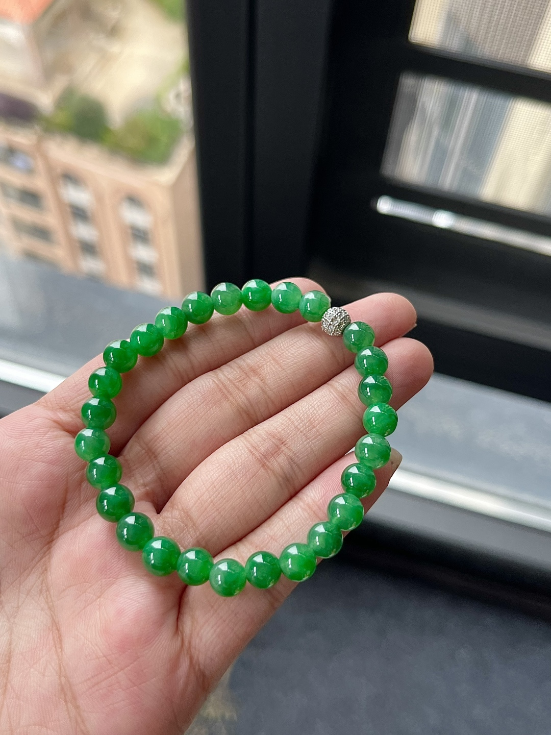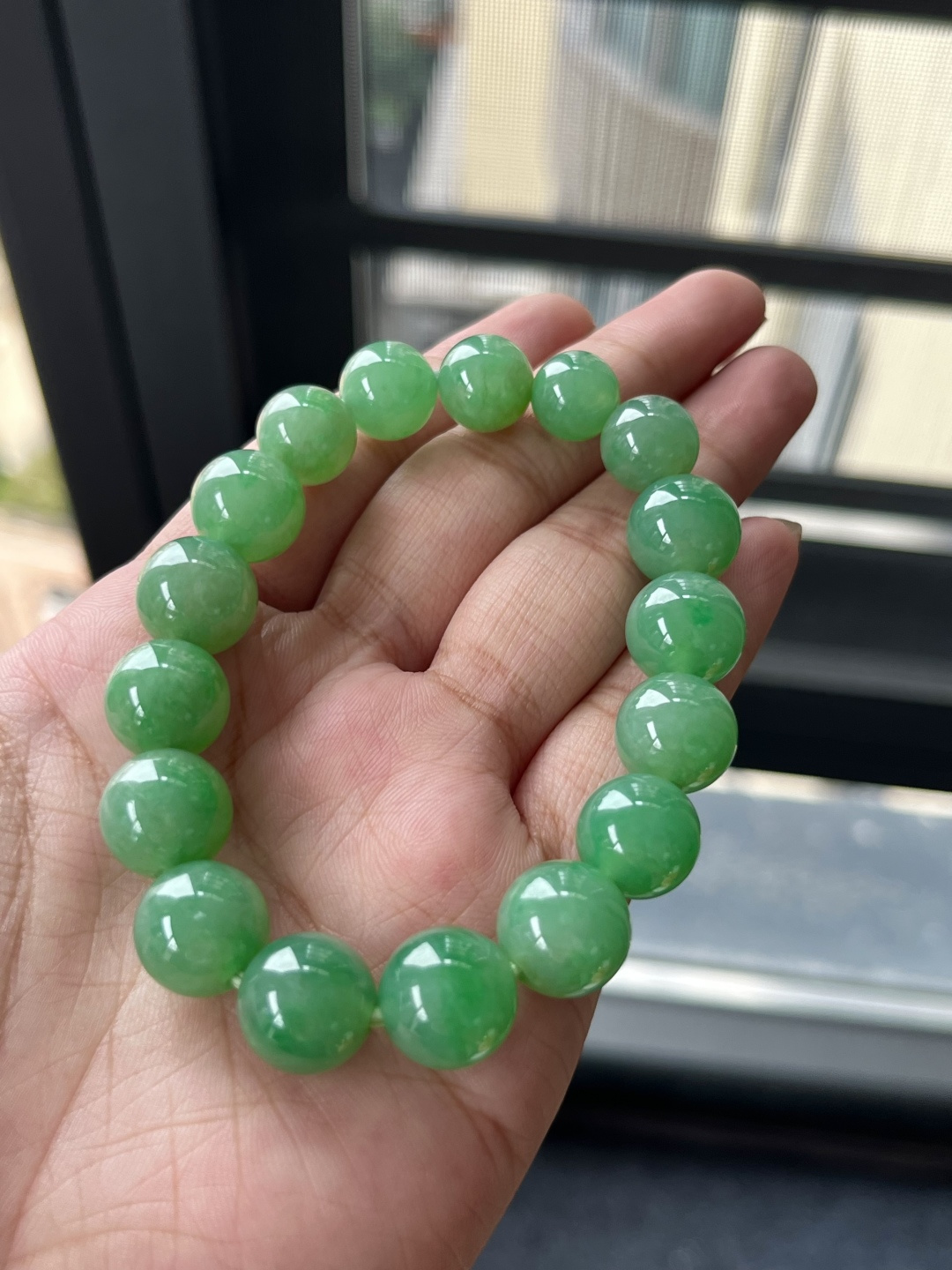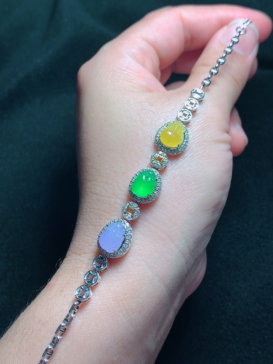 ️18k金镶嵌冰种阳绿蛋面手链,种老水头好,又冰又润,饱满:9.3/8.8/7.2mm裸石:6.1
