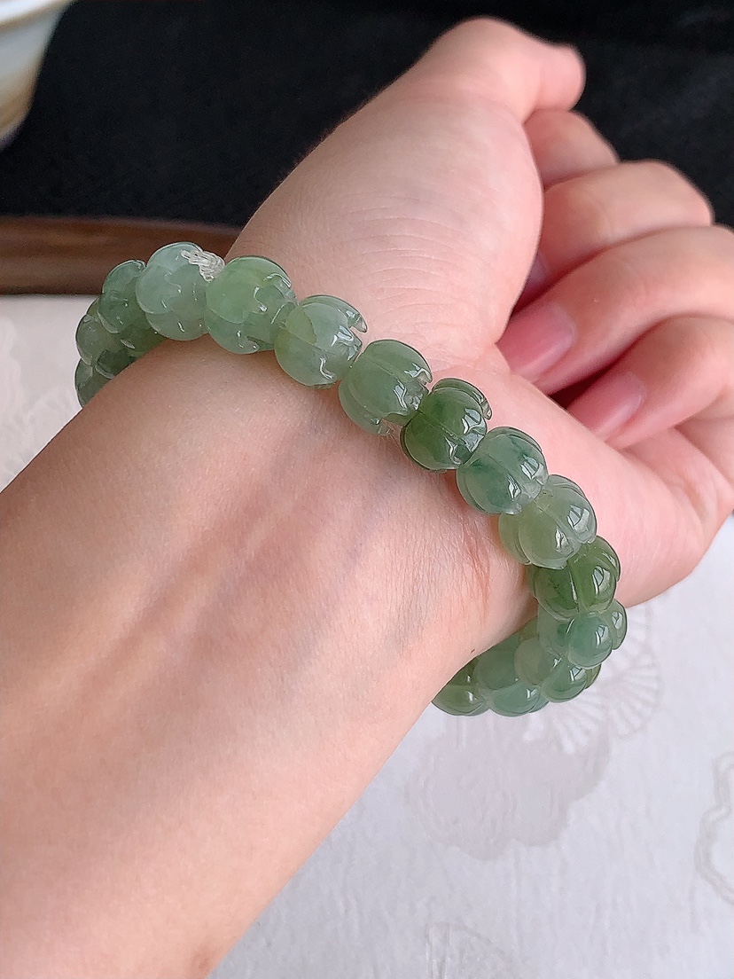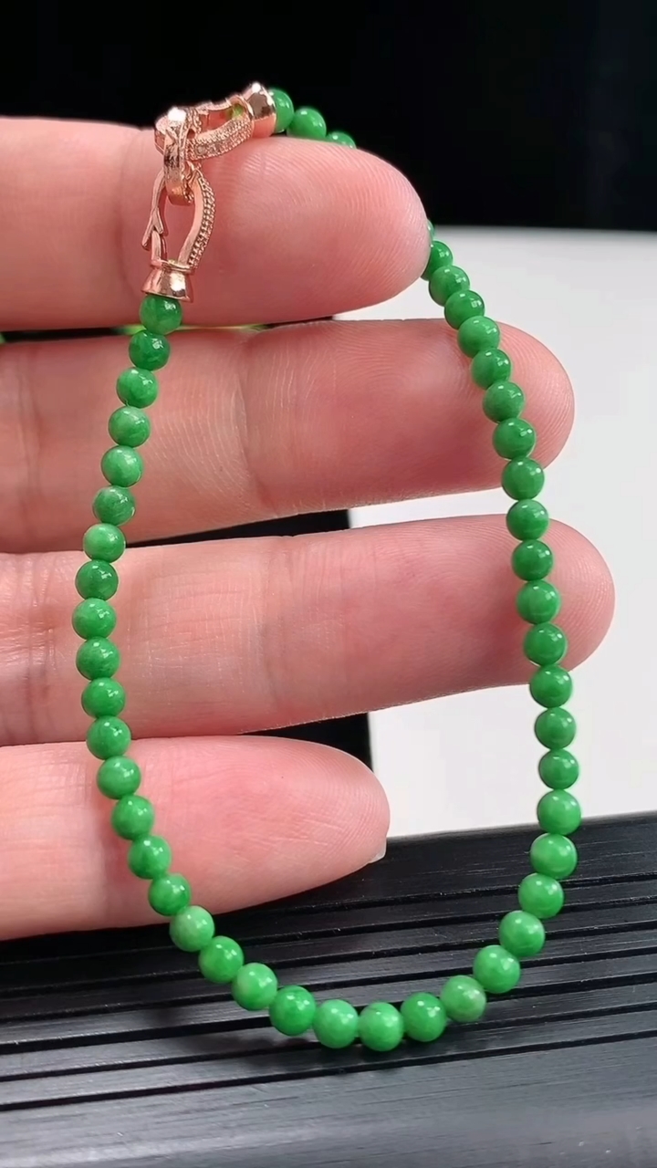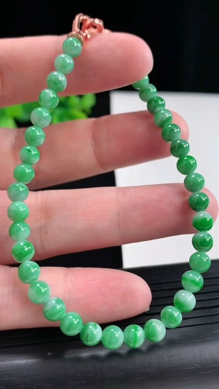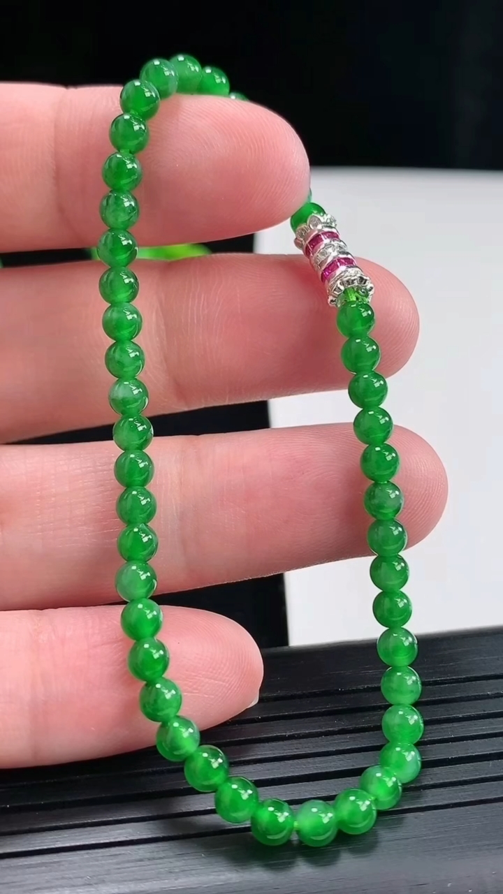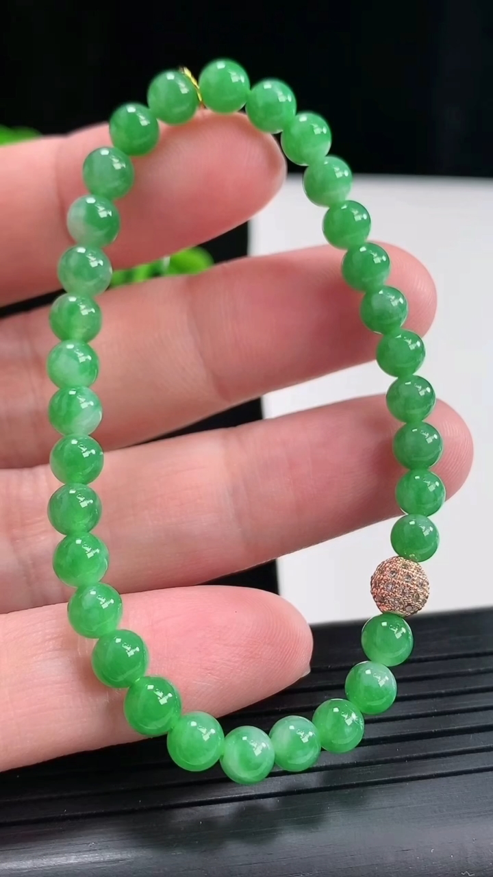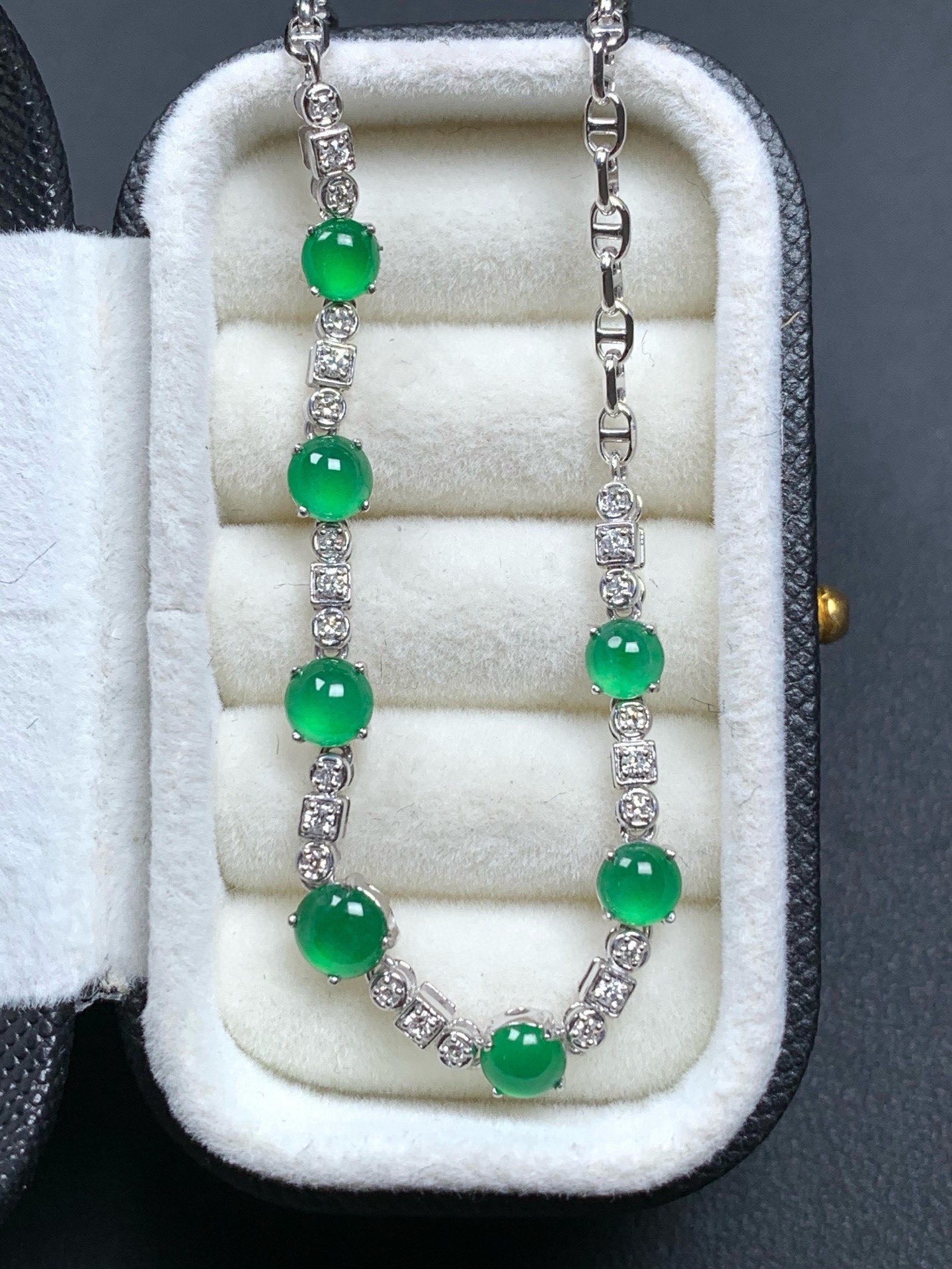 满绿圆珠手链 玉质细腻 色泽艳丽清新 水润亮眼 整体尺寸7