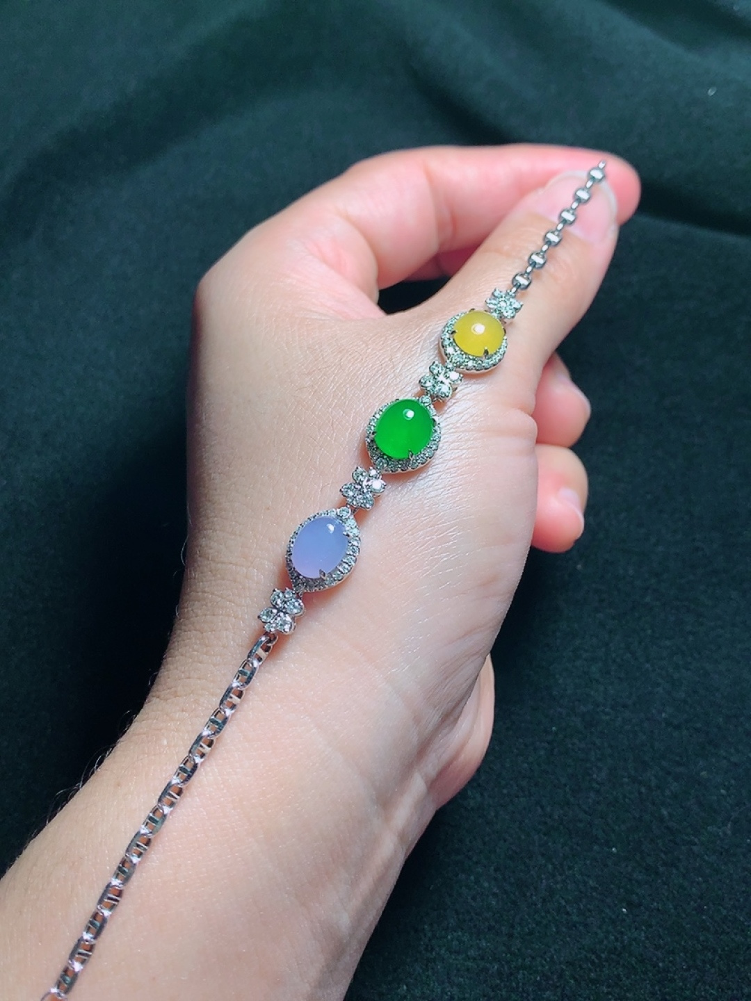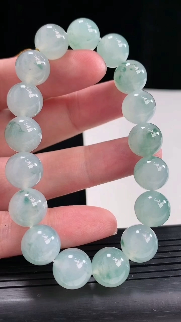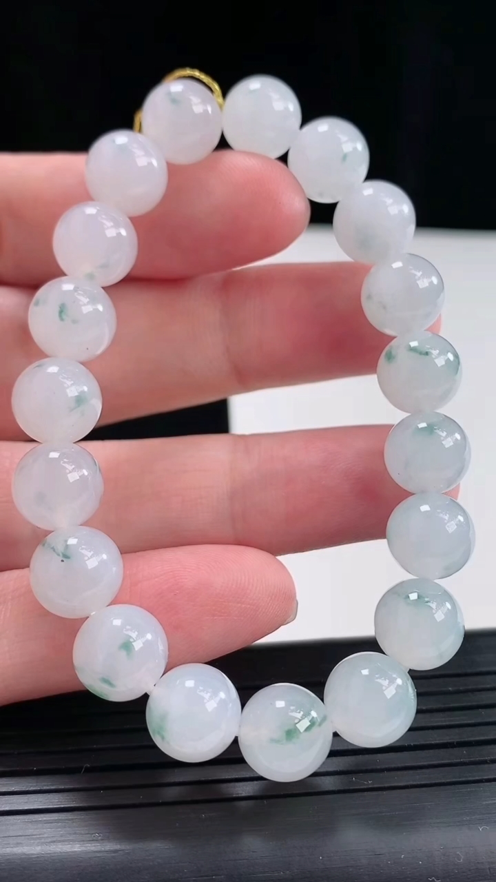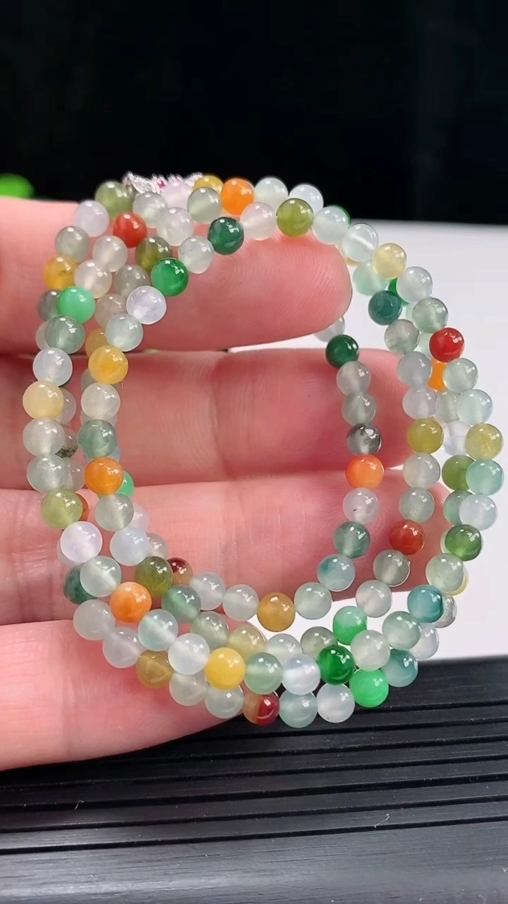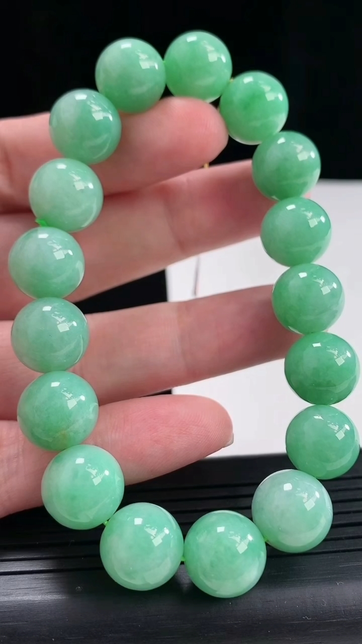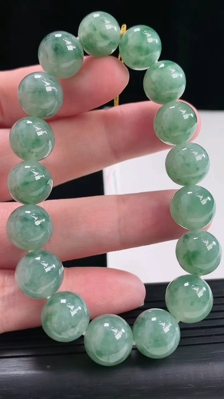 满绿圆珠手链 玉质细腻 色泽艳丽清新 水润亮眼 整体尺寸7