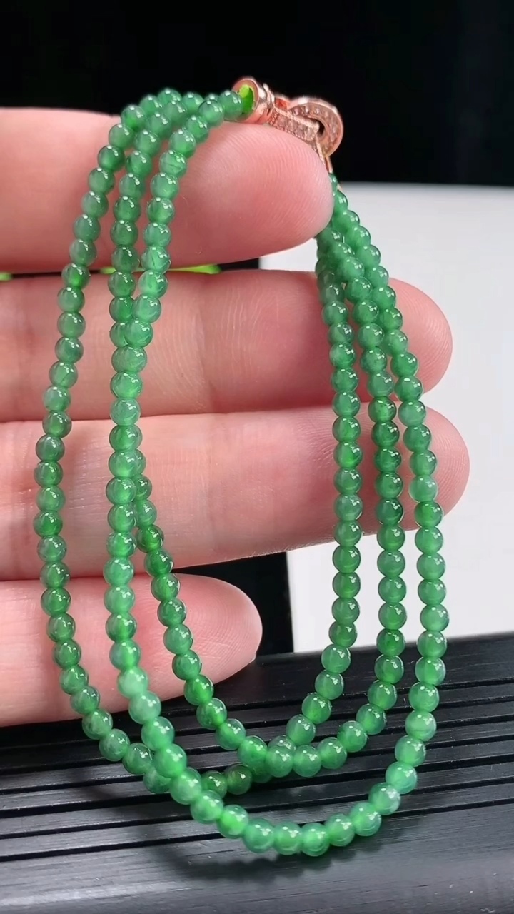 果绿圆珠项链 玉质细腻 色泽艳丽清新 水润亮眼 整体尺寸6.2p1