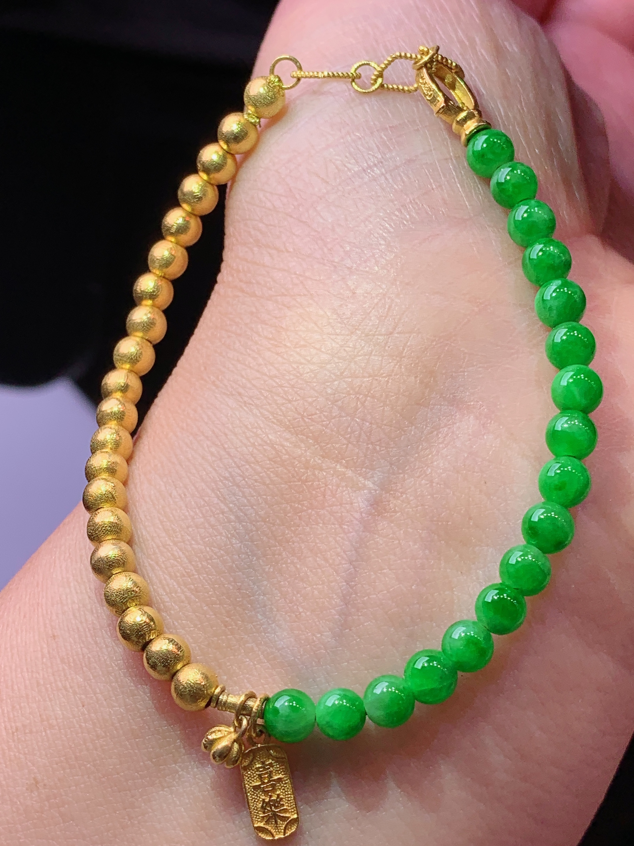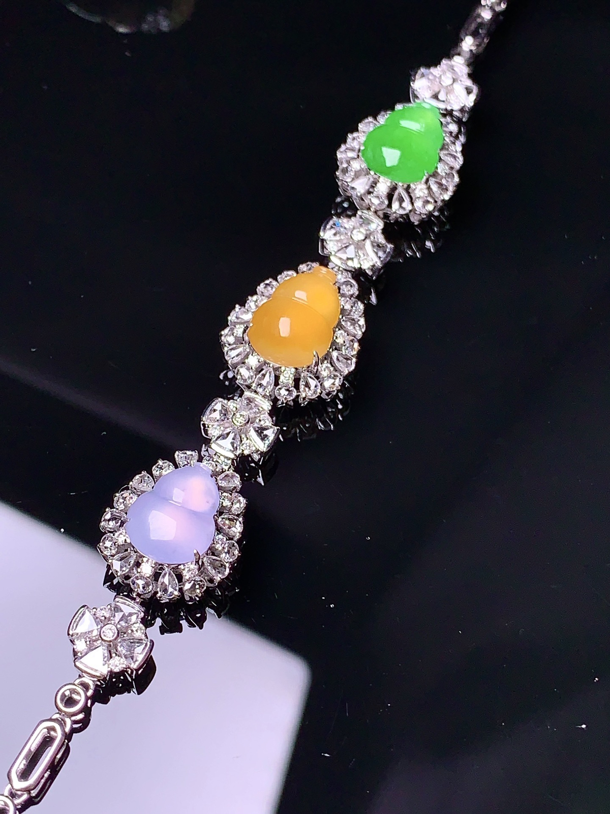 18k金钻镶嵌三色葫芦手链 玉质细腻 色泽清新艳丽 整体尺寸65*12*7.6