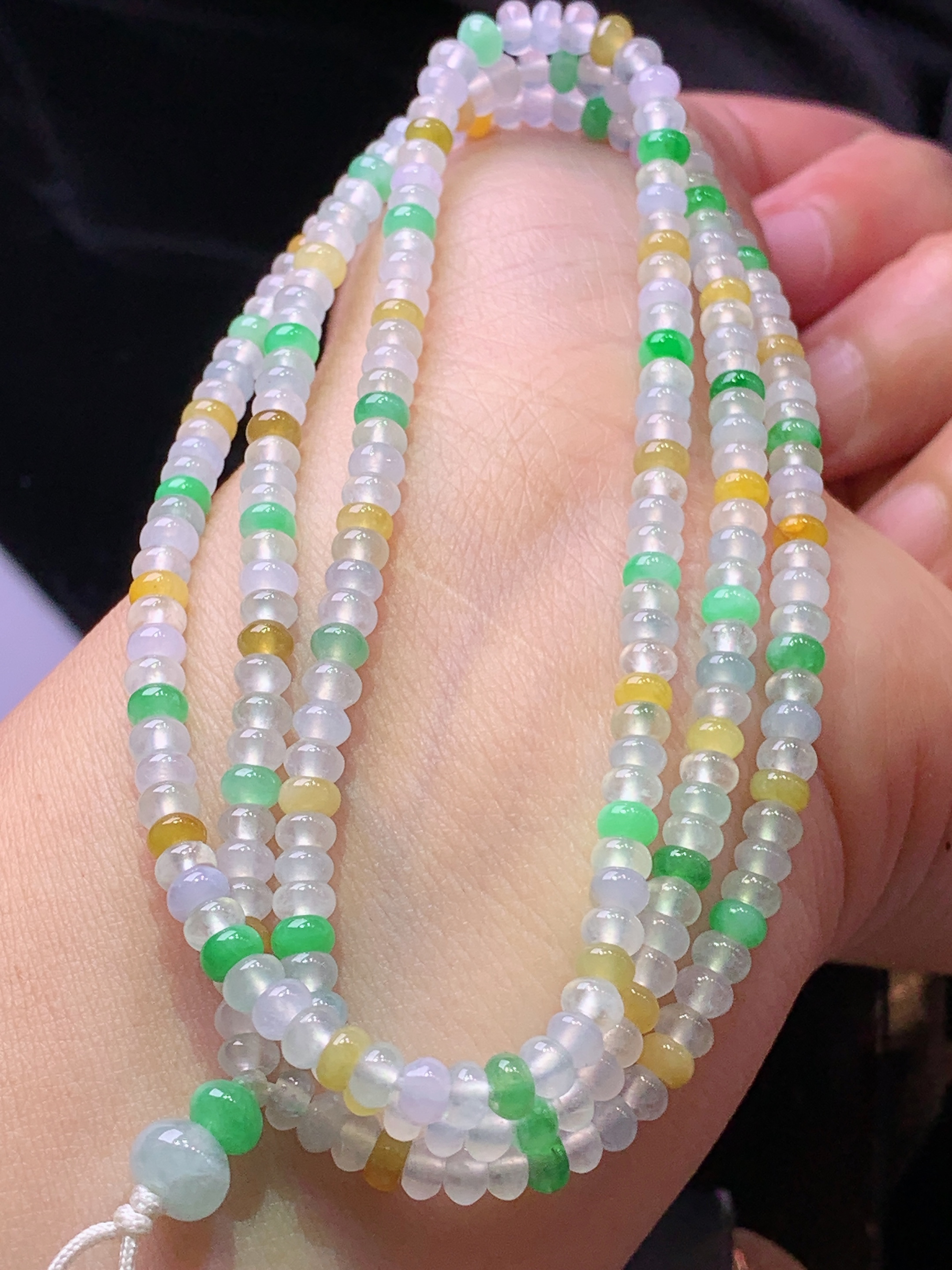 多彩算盘珠项链 玉质细腻 色泽艳丽清新 水润亮眼 整体尺寸4*2.5c5