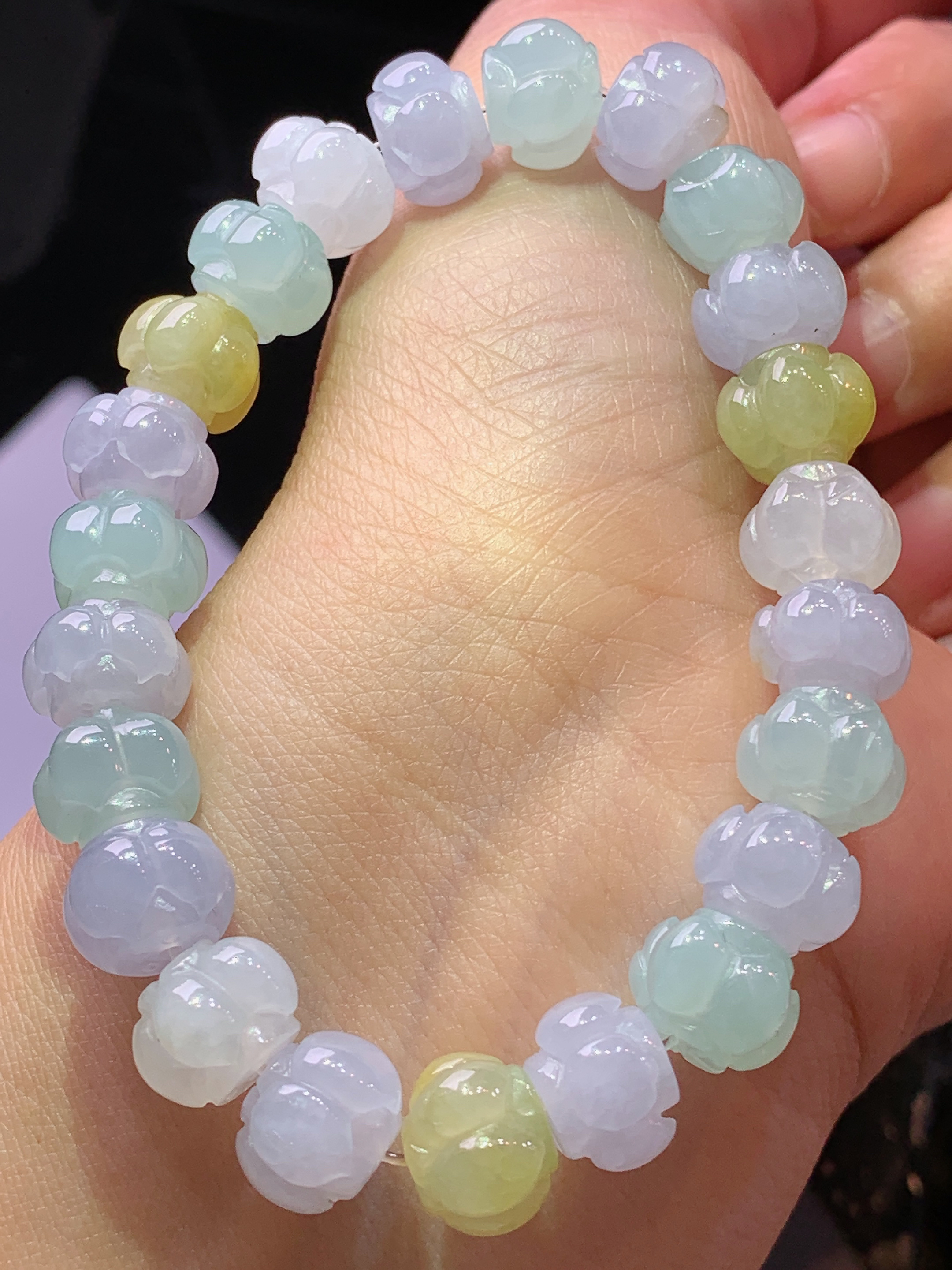 多彩莲蓬头手链 玉质细腻 色泽艳丽清新 水润亮眼 整体尺寸10*7.3c5