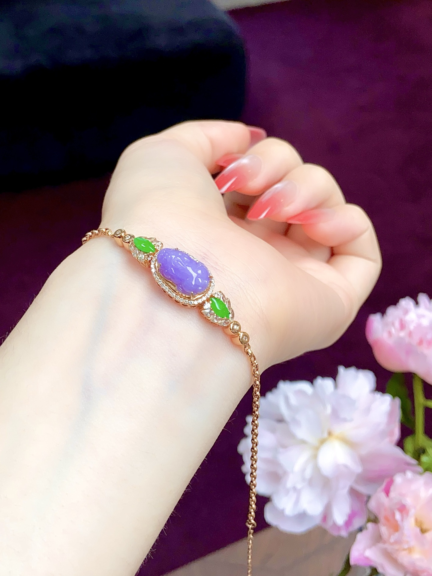 A货天然翡翠冰糯种紫罗兰项链108颗重量67.06g 4月27日