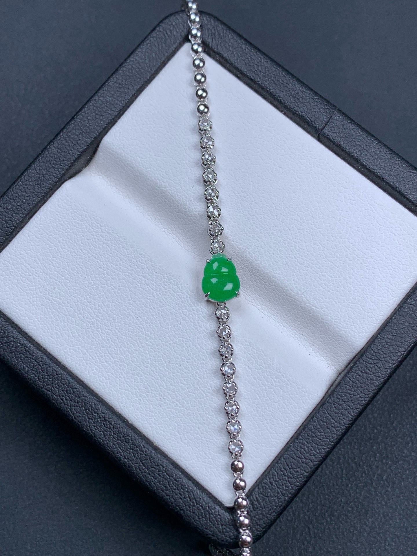 天然A货翡翠白冰葫芦项链,尺寸7.7-4.4-3.3,重量:5.44g4月26日 工厂直销收藏佳品,