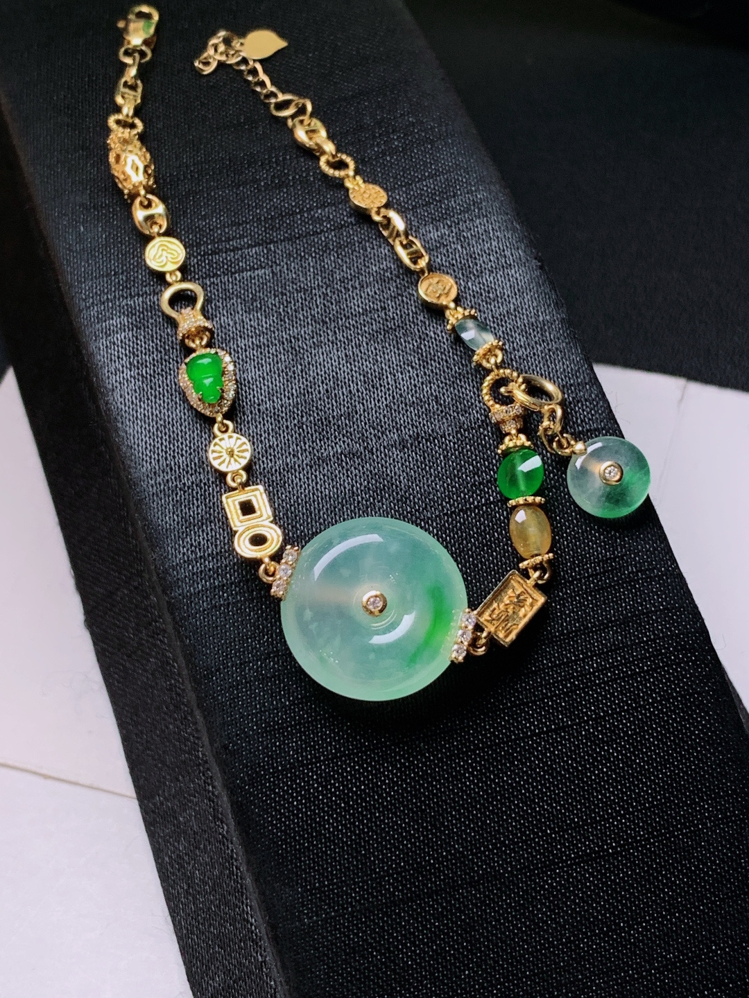 天然A货翡翠种白冰平安扣手串,尺寸14-6.2重量:14.65g4月27日 工厂直销收藏佳品,种好水