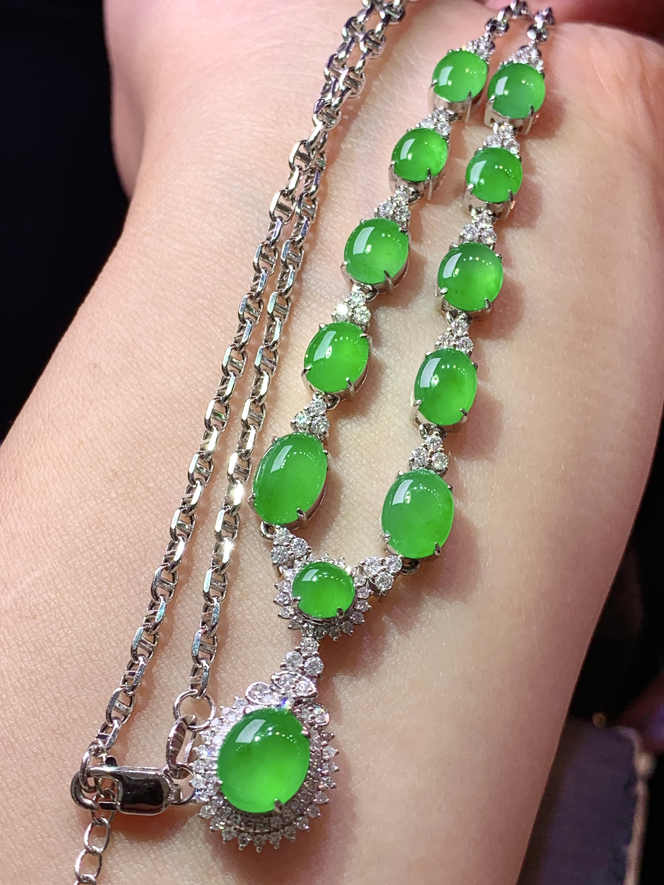 天然A货翡翠三彩圆珠项链,尺寸4-146颗重量:18.09g4月27日 工厂直销收藏佳品,种好水足,