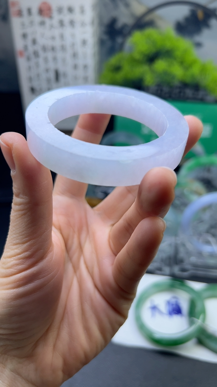 ee实拍59*12.6*9.6平安镯 天然缅甸翡翠冰胶飘绿玉手镯厚装宽边玉手环