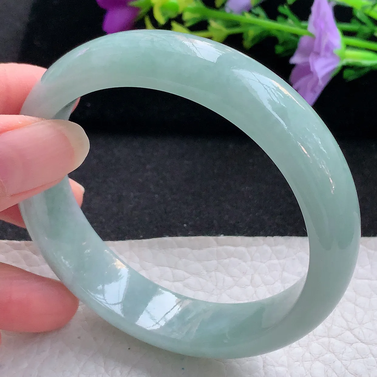 xh实拍56*9*8.8圆条镯 天然翡翠A货手镯油绿叮当镯 美人圆镯