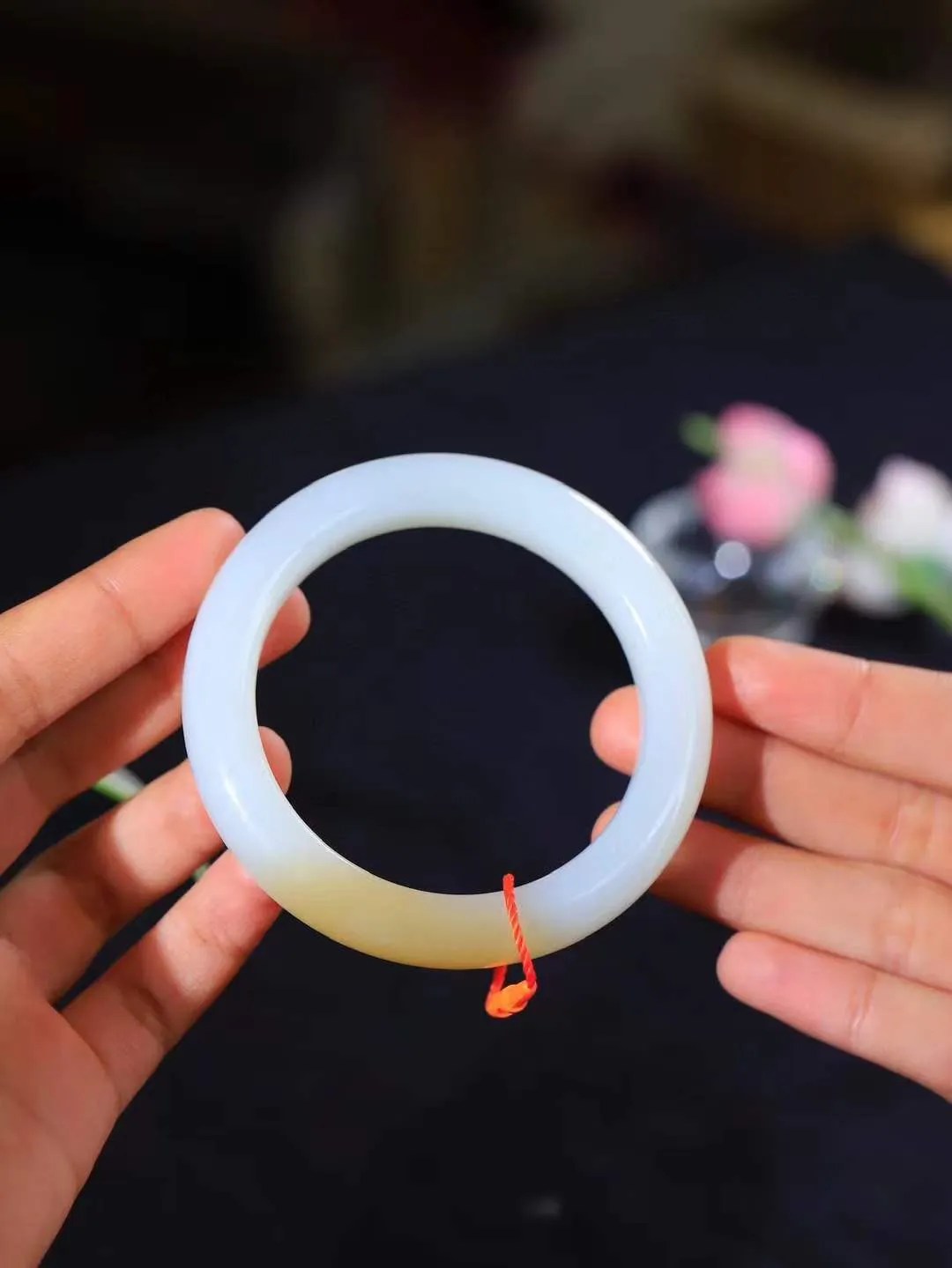 正圈55.4圈口,和田玉手镯,表面颜色为人工绘制
