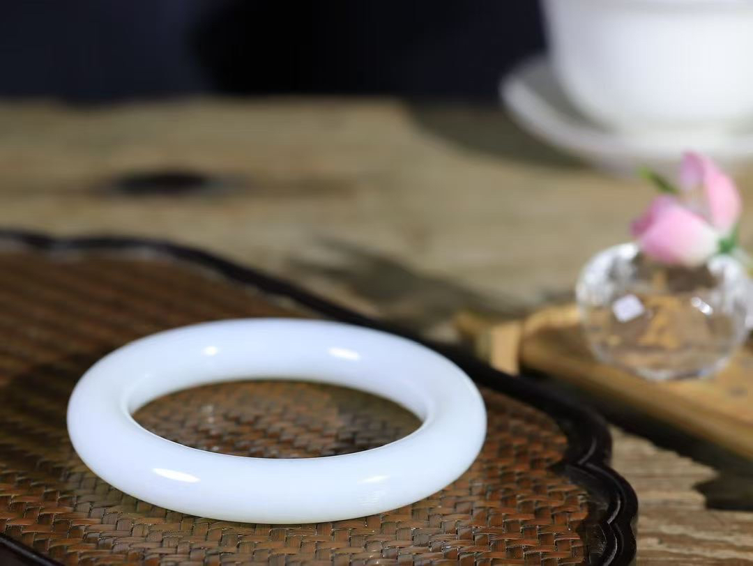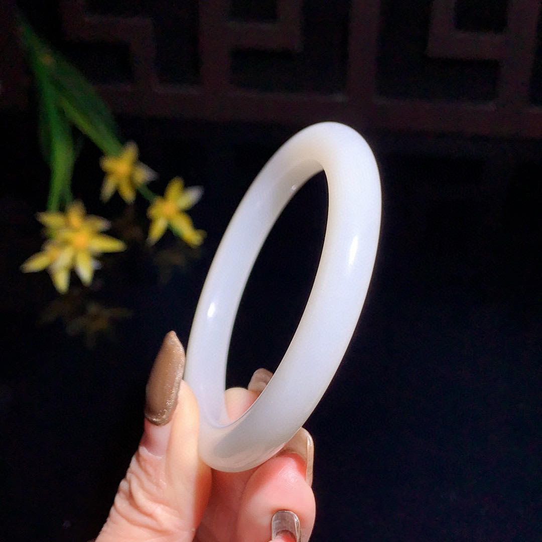 和田玉57.5圈晴水色手镯!玉质细腻油润 底色纯净 无裂无杂 脂粉好,品质高。