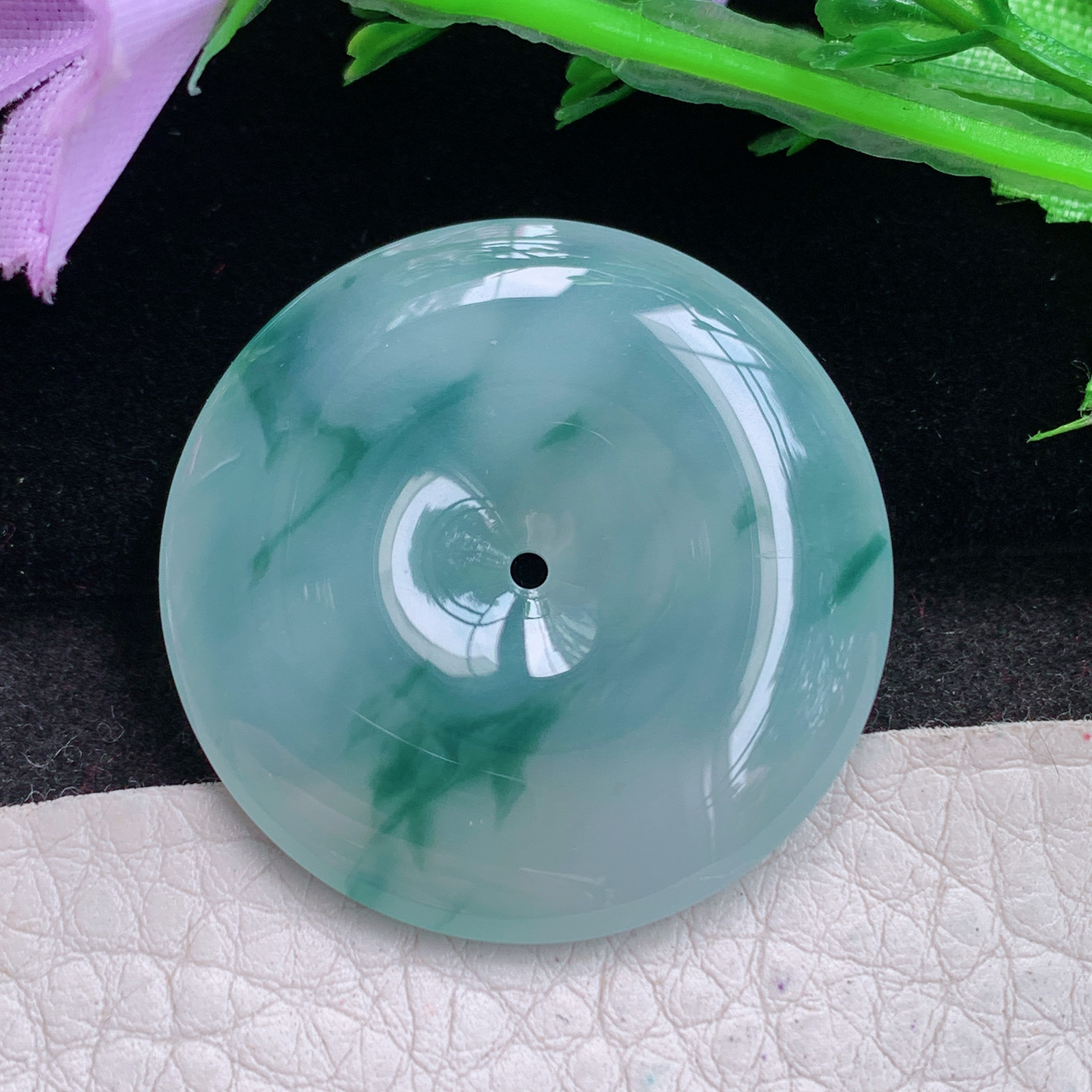 sx实拍34*5.8缅甸天然翡翠冰飘花饱满大平安扣 玉扣玉项坠 玉挂件