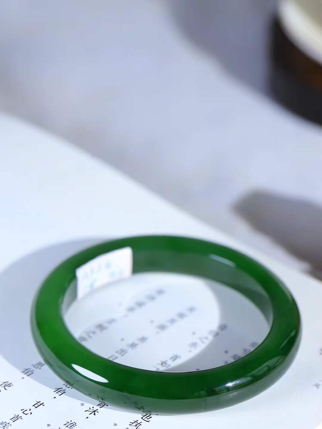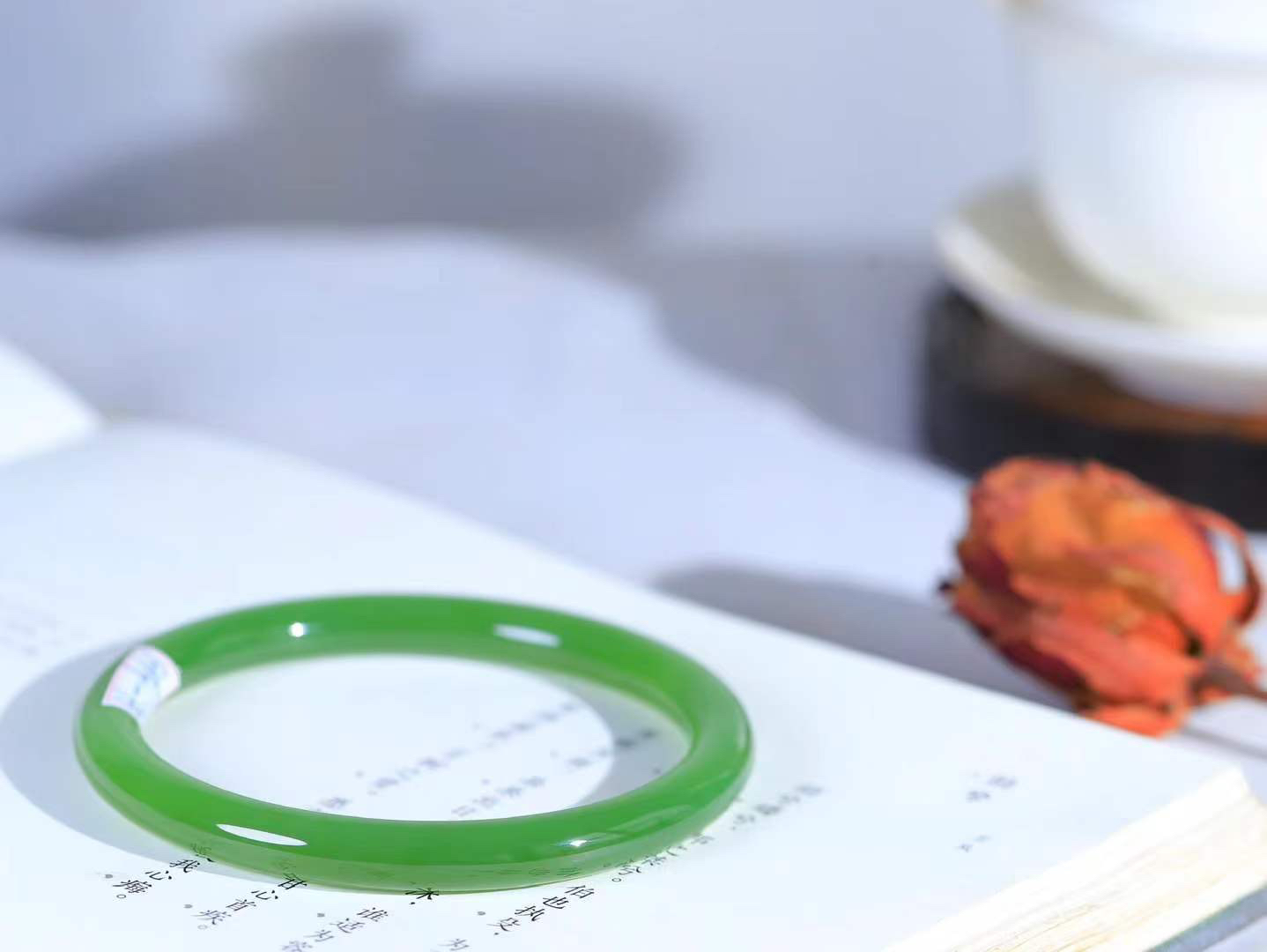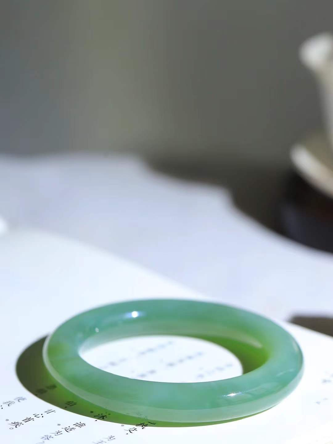 (碧色荡漾.手镯) 收藏级臻品️和田玉碧玉手镯,灼灼其华想像靓妆淡伫 ,腕间绿意跳脱冰壶莹,坐