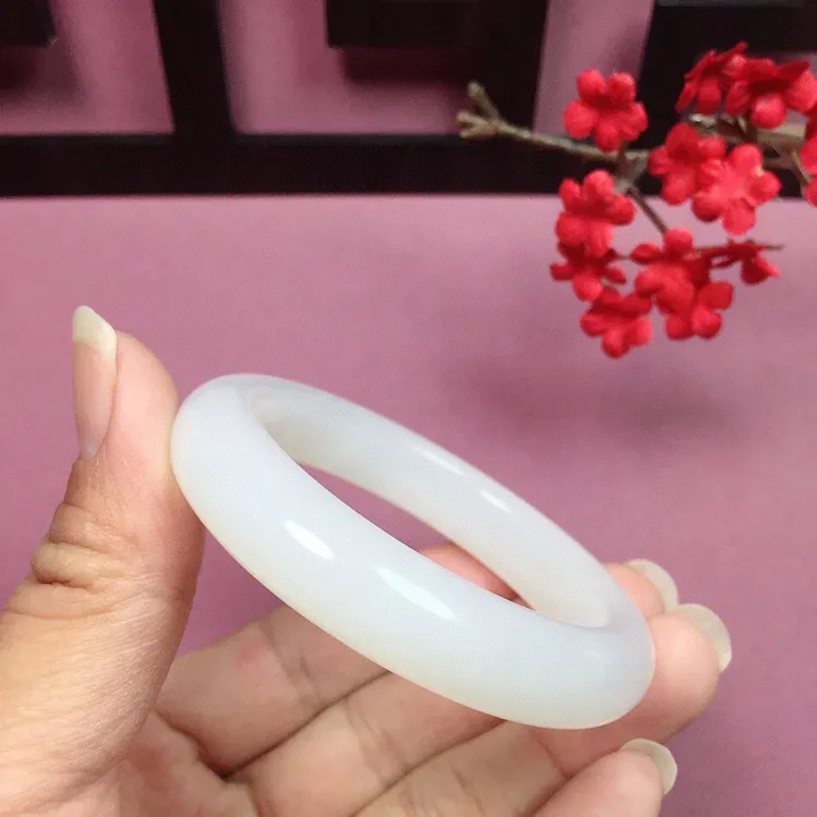 和田玉56.2圈口羊脂白手镯,镯型古朴典雅。基本无结构无水线,在诗情画意的雨巷相遇,你是我腕间的一抹