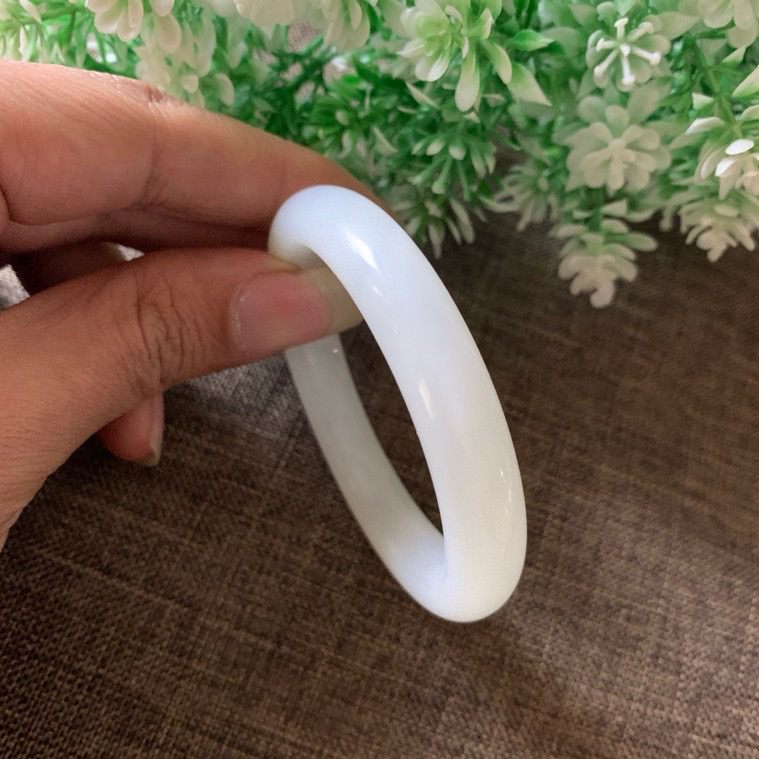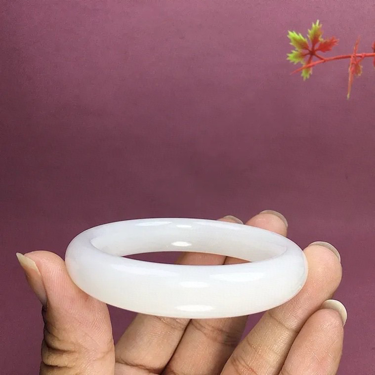 54圈口和田玉羊脂白手镯,精品荔枝冻冰白手镯,镯型古朴典雅。在诗情画意的雨巷相遇,你是我腕间的一抹风
