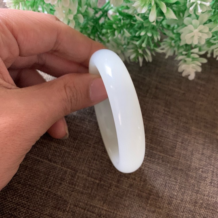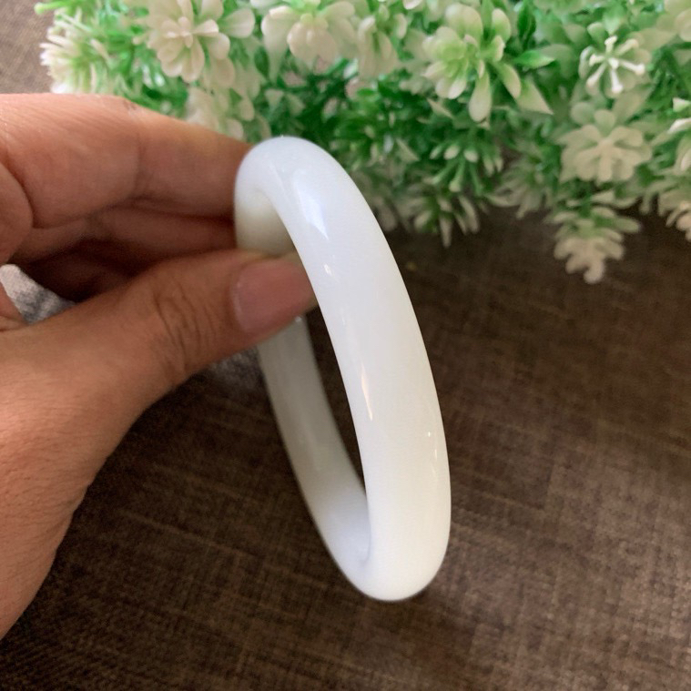 56.5圈口和田玉羊脂白手镯,镯型古朴典雅。在诗情画意的雨巷相遇,你是我腕间的一抹风情,有你眸有深情