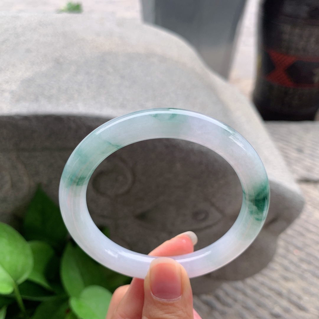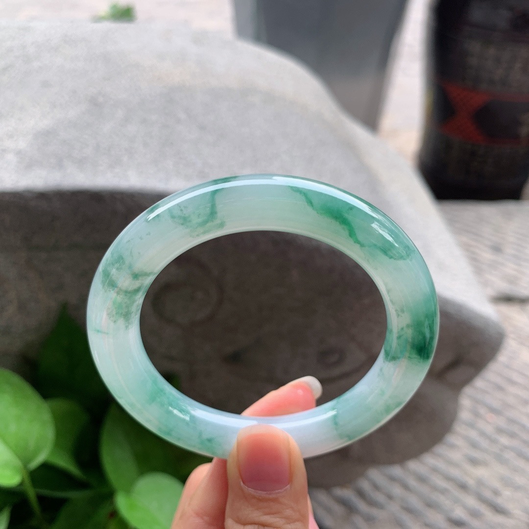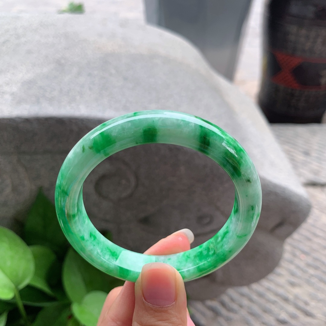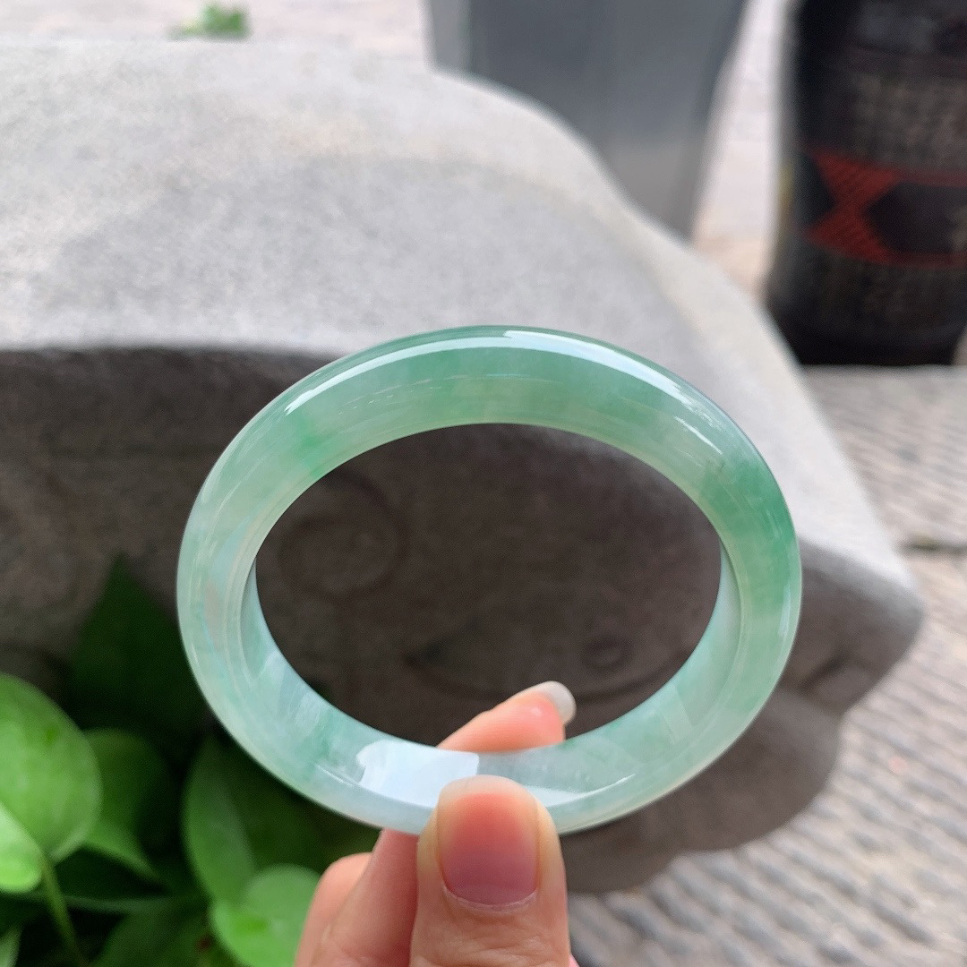 A货天然翡翠冰糯种飘花手镯59圈重量52.54 4月19日