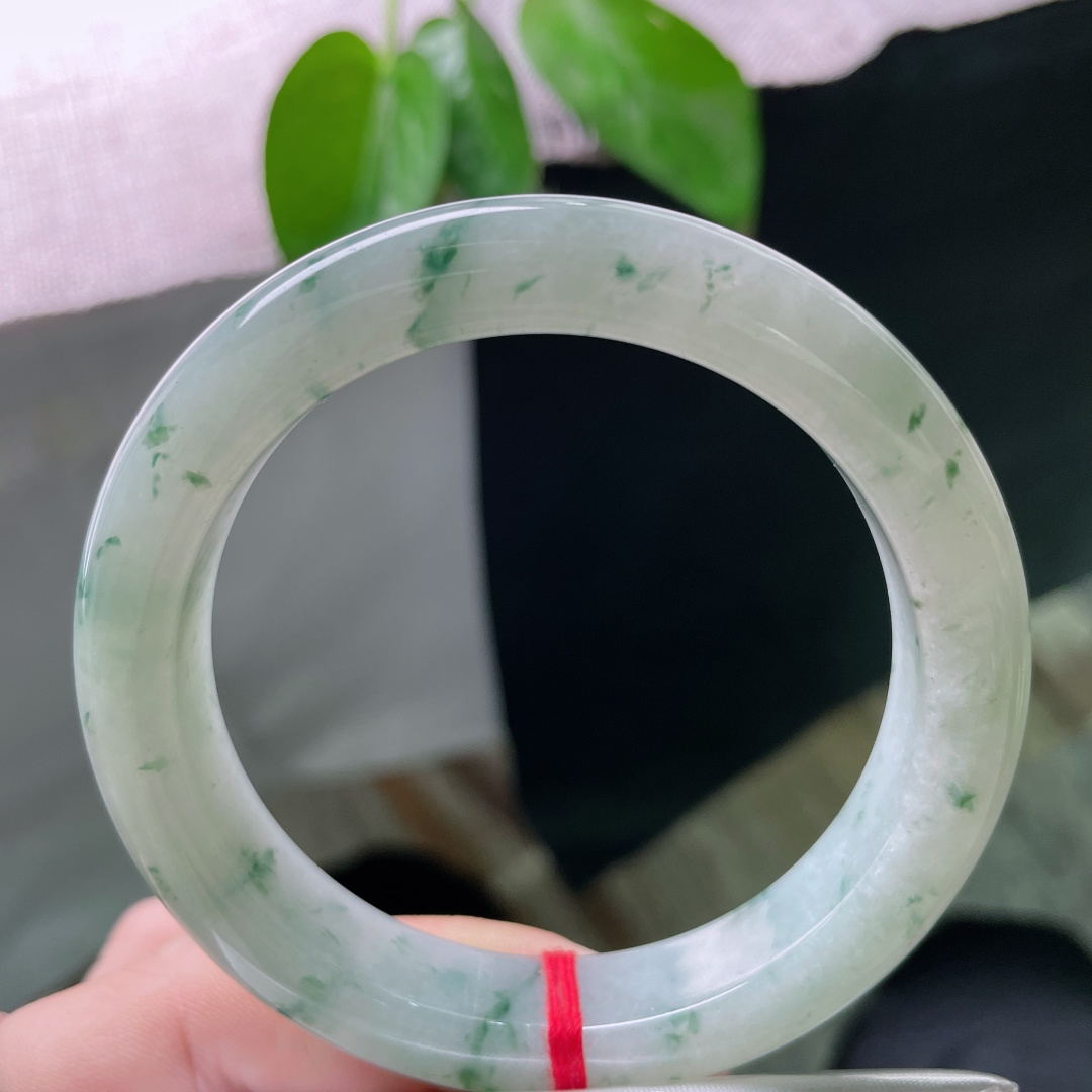 A货天然翡翠冰糯种黄飘花手镯59圈重量50.66 4月16日