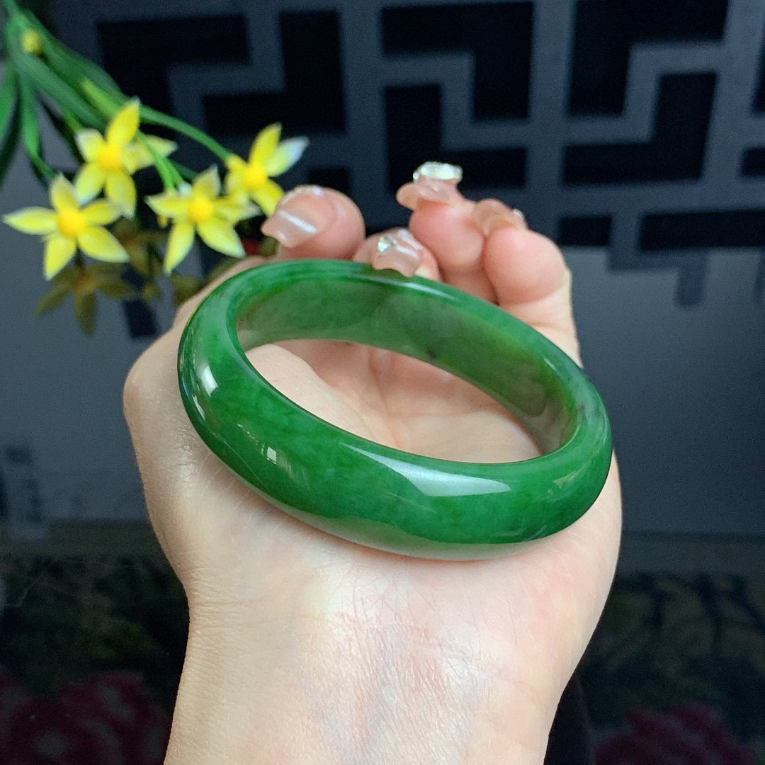 js大圈口63*12.5*7平安镯 天然缅甸翡翠a货手镯飘绿大气正圈玉镯子