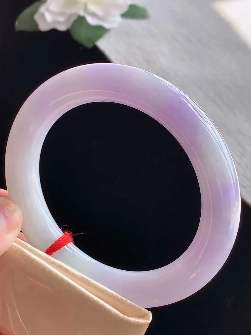 a货翡翠老坑冰种紫罗兰圆条手镯57-58圈口 尺寸57.8×11mm 1105