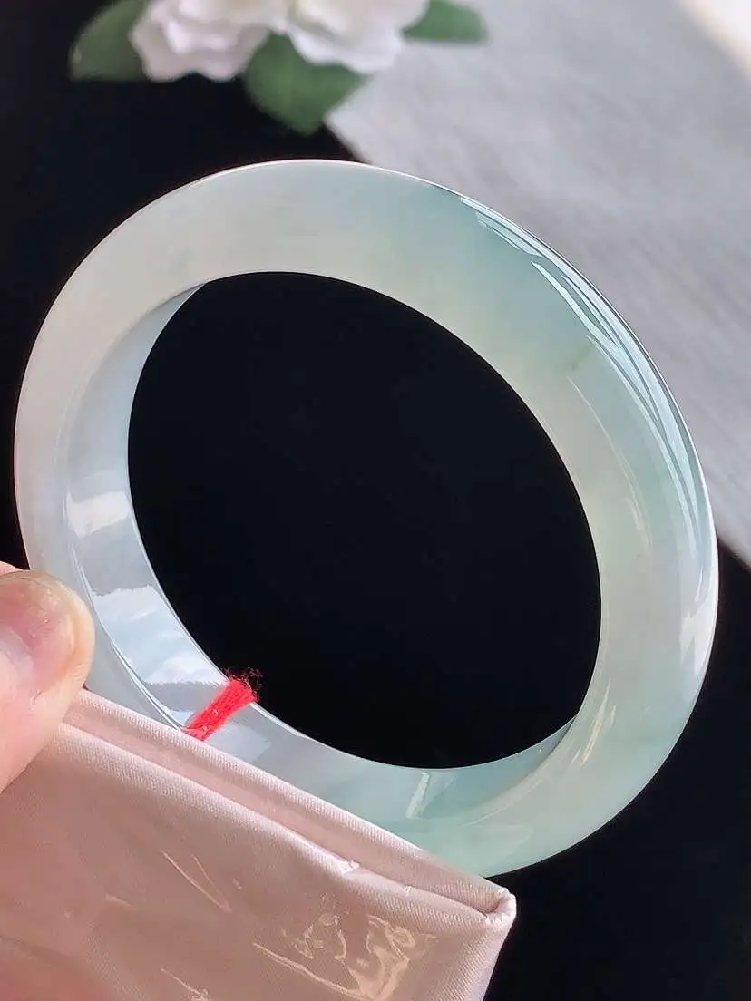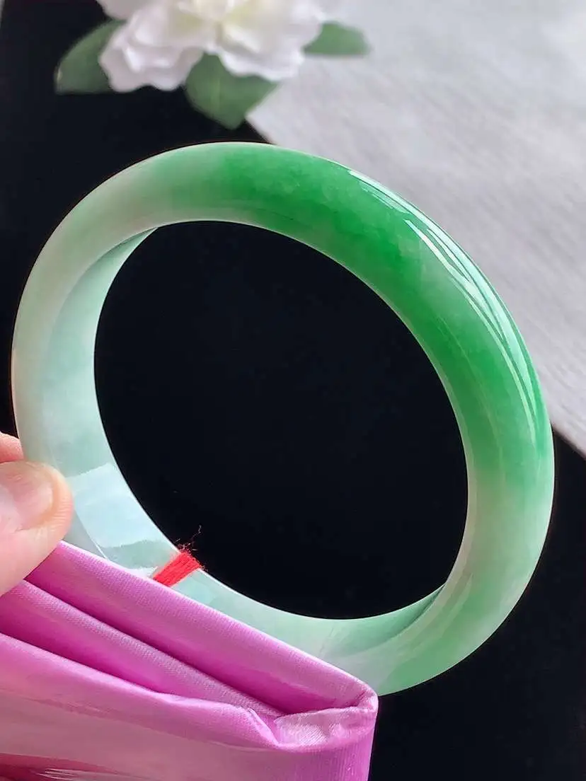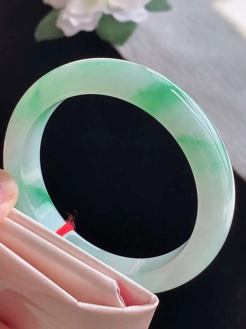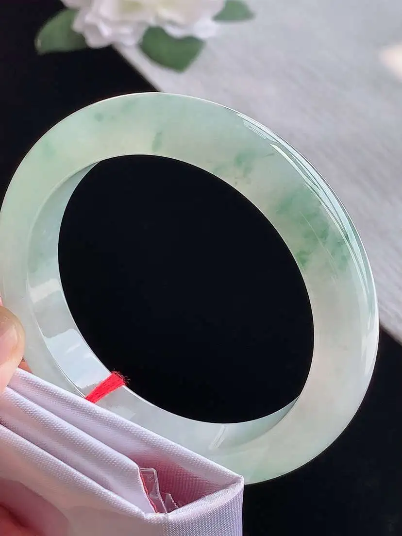 a货翡翠老坑冰种飘绿正装正圈手镯61-62大圈口 尺寸61.8×12.8×8mm 1105