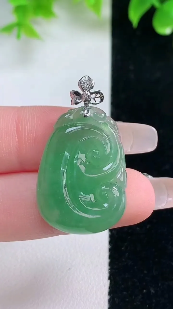 天然A货翡翠如意吊坠,尺寸27.6-19.8-4.8,重量:6.12g 1月18日
