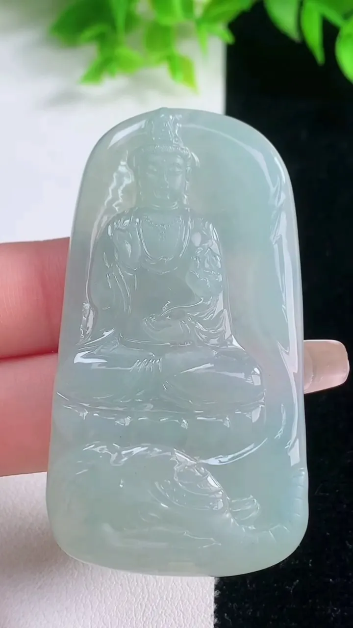 天然A货翡翠普贤菩萨吊坠,尺寸49.4-34.2-3.6,重量:20.59g 1月18日
