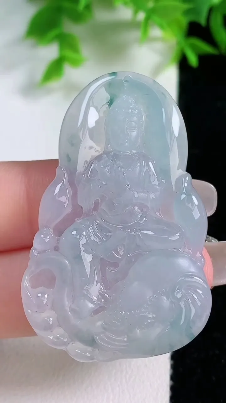 天然A货翡翠种飘花普贤菩萨吊坠,尺寸47.6-30.4-6,重量:16.00g 1月25日