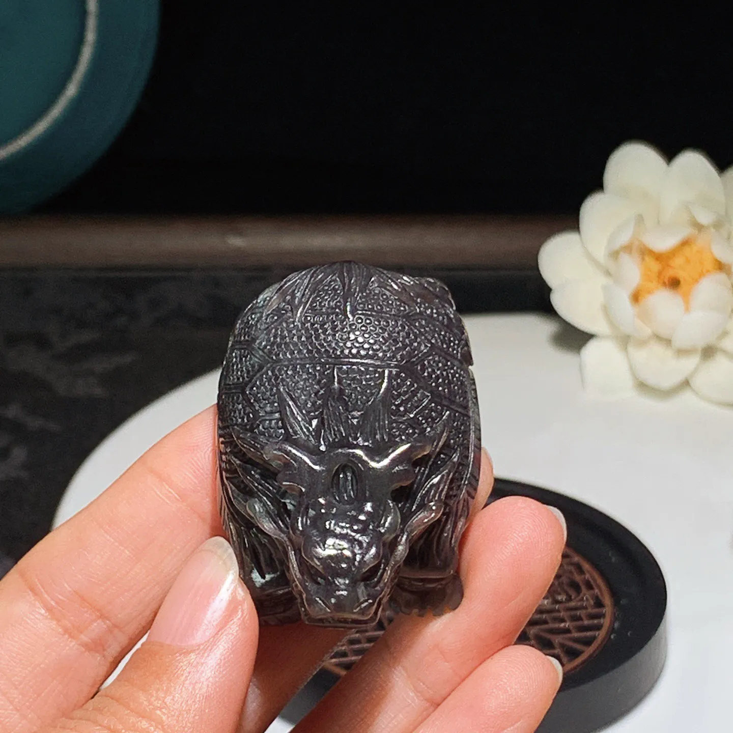 和田玉紫罗兰富贵长寿龙龟挂件 尺寸46/33/24重56克。玉质细腻油润。手推出油品相大气。2501