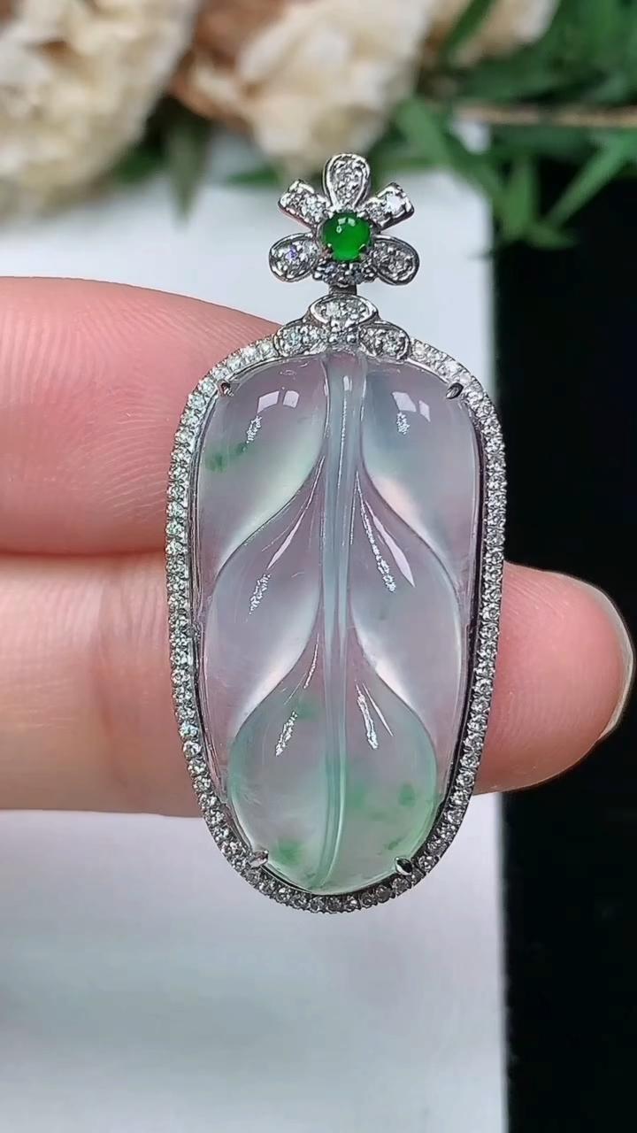 天然A货翡翠金枝玉叶 叶子吊坠,尺寸34.6-15.7-7.9 3月28日