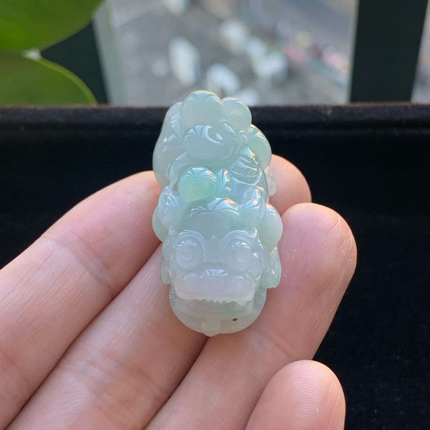 A货天然翡翠冰糯种飘绿貔貅吊坠重量23.58 3月28日