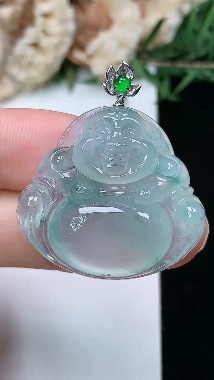 天然A货翡翠飘花佛公吊坠,尺寸25.9-28.3-6,重量:7.04g 3月28日