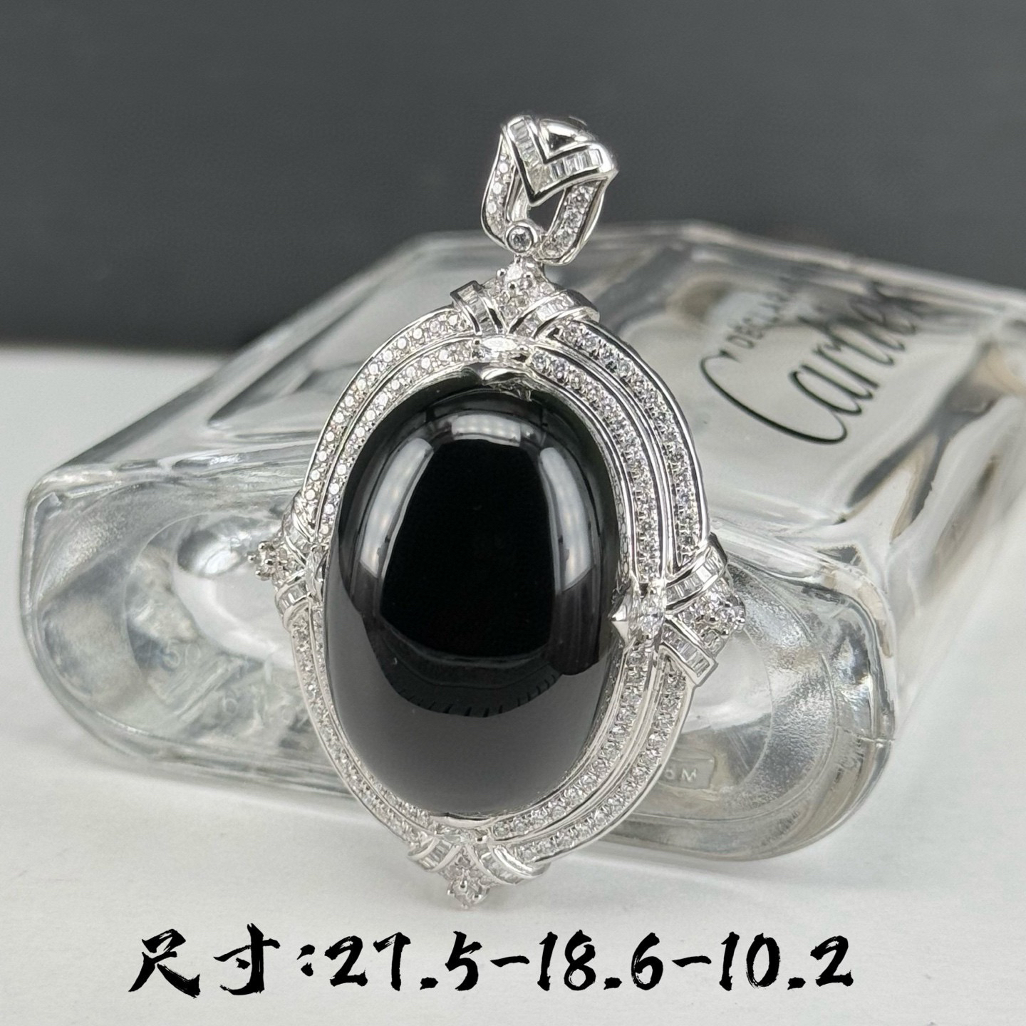 精品豪镶墨翠蛋面吊坠 种好色正 黑度极好 打灯通透 油性十足 尺寸27.5