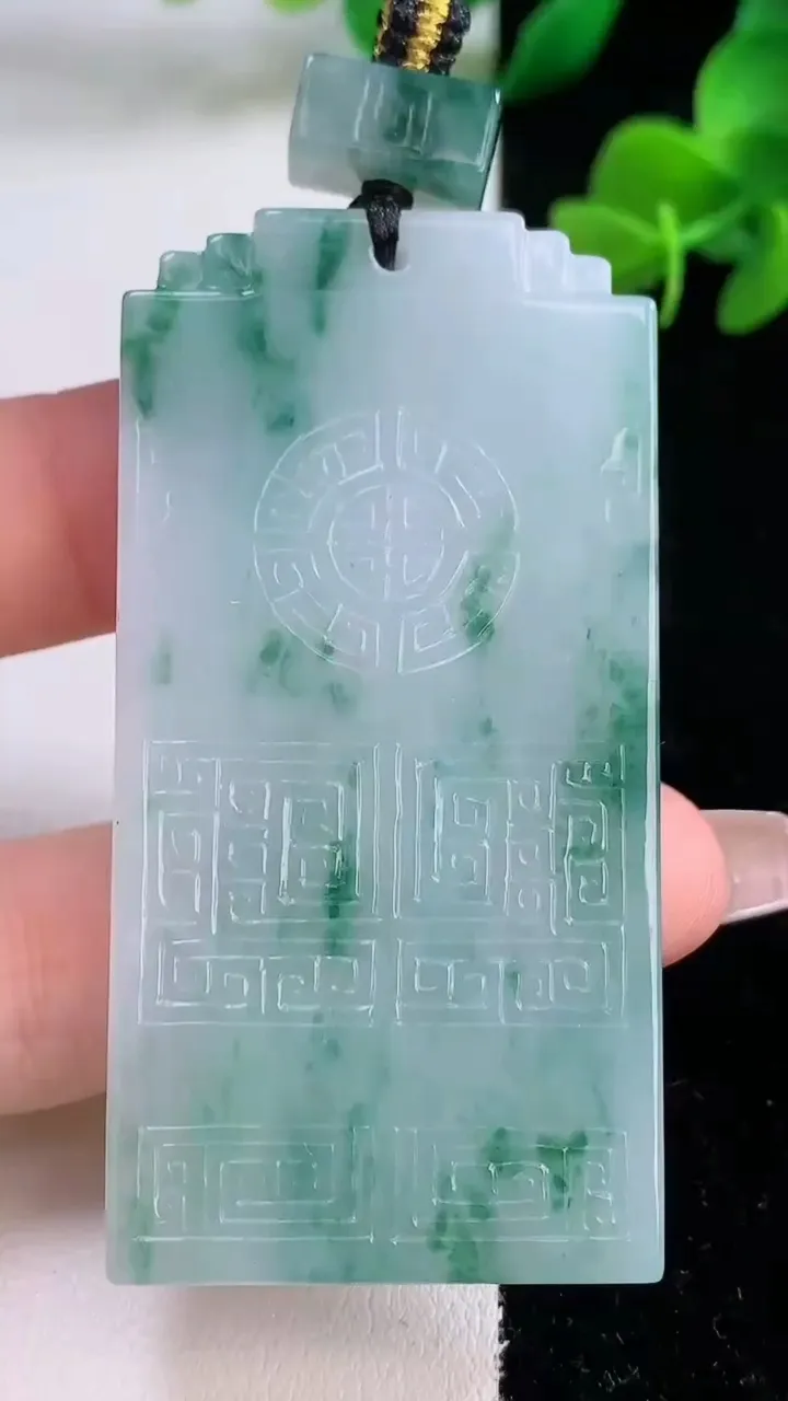 天然A货翡翠飘花仿古无事牌吊坠,尺寸61.2-30.6-6,重量:38.58g 12月8日