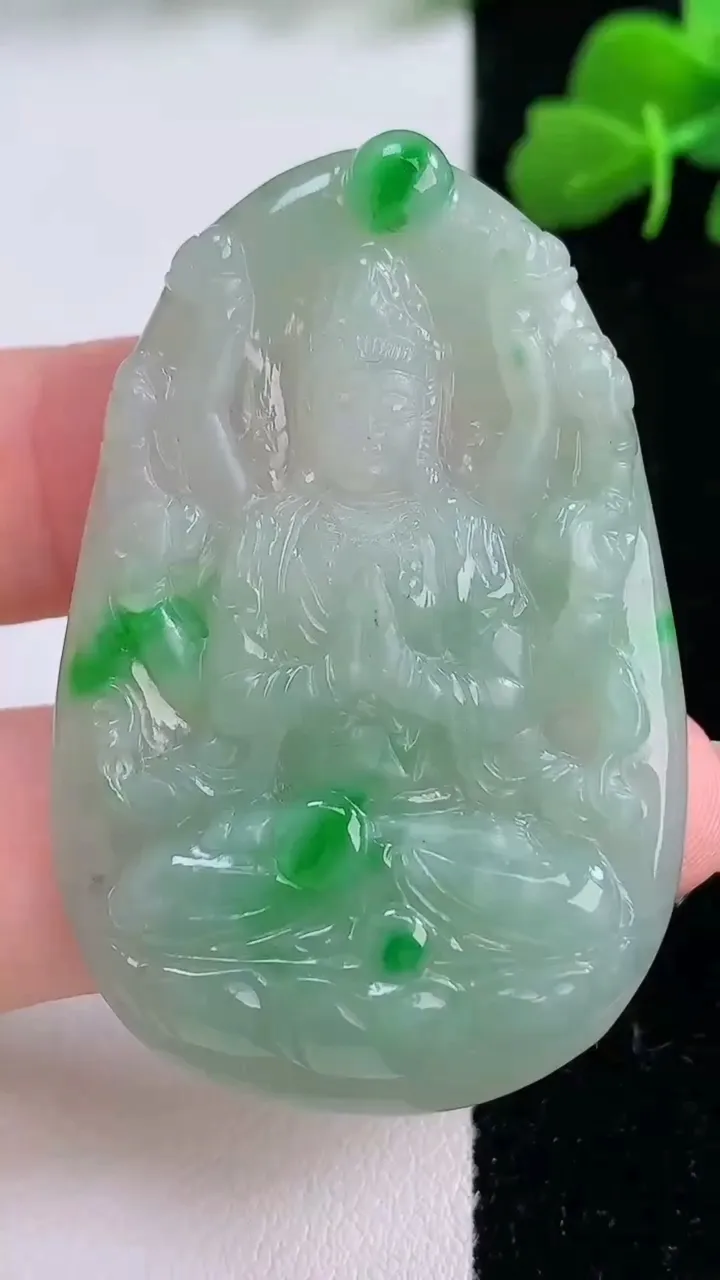 天然A货翡翠千手观音吊坠,尺寸51-33-5.4,重量:16.80g 12月8日