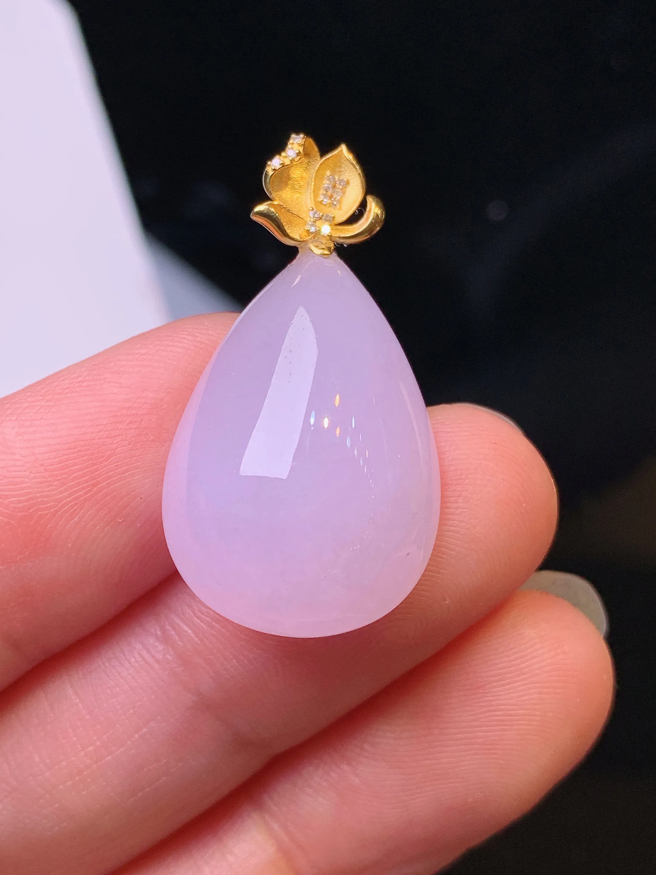 18k金镶嵌紫罗兰水滴吊坠 玉质细腻 色泽清新艳丽 整体尺寸29.2*15.7*10
