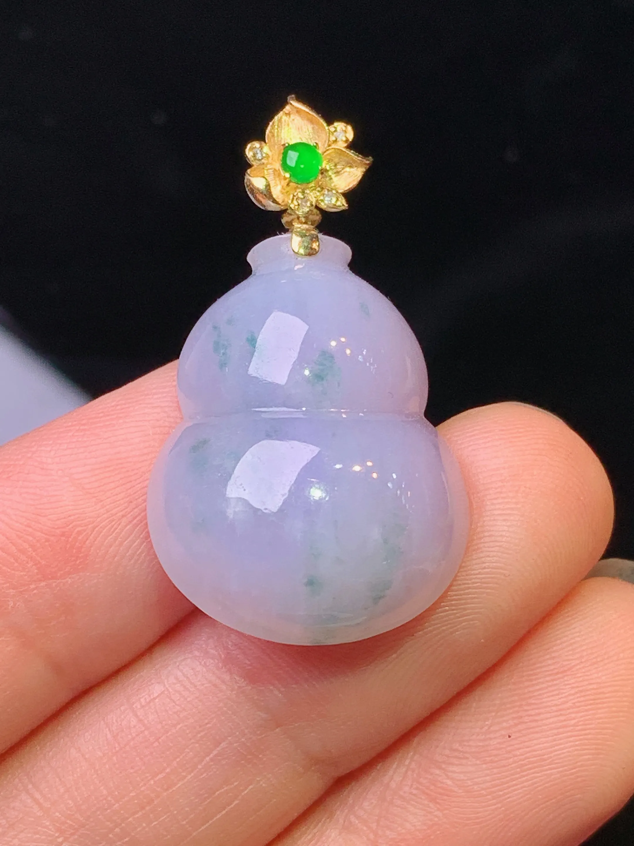18k金钻镶嵌紫罗兰飘花吊坠 玉质细腻 色泽清新艳丽 整体尺寸33.2*18.5*9.2
