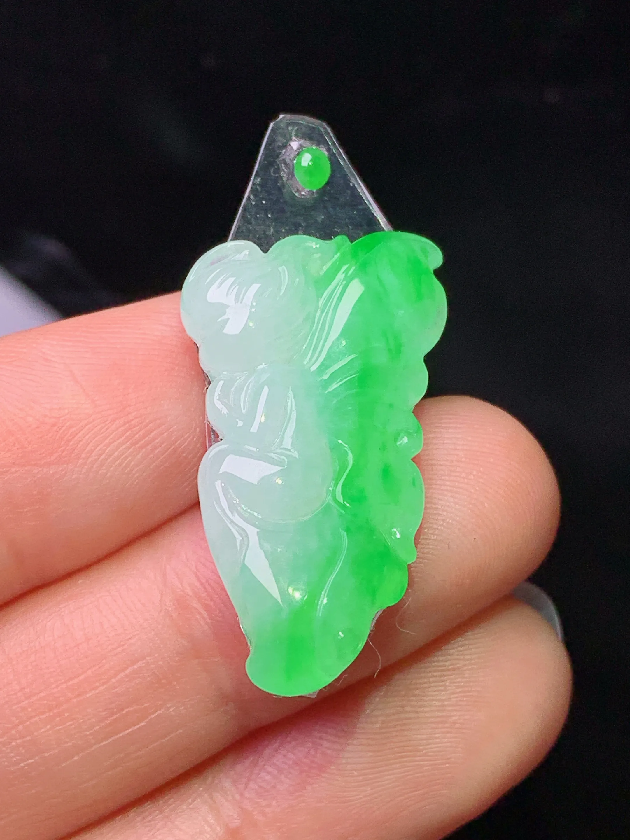 镶嵌款 翠绿天使宝宝吊坠 玉质细腻 色泽清新艳丽 整体尺寸29*16*4.8
