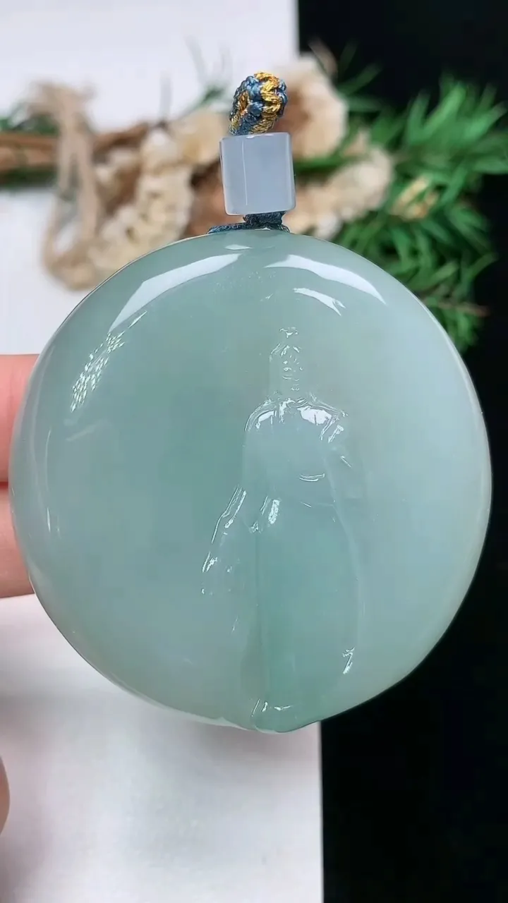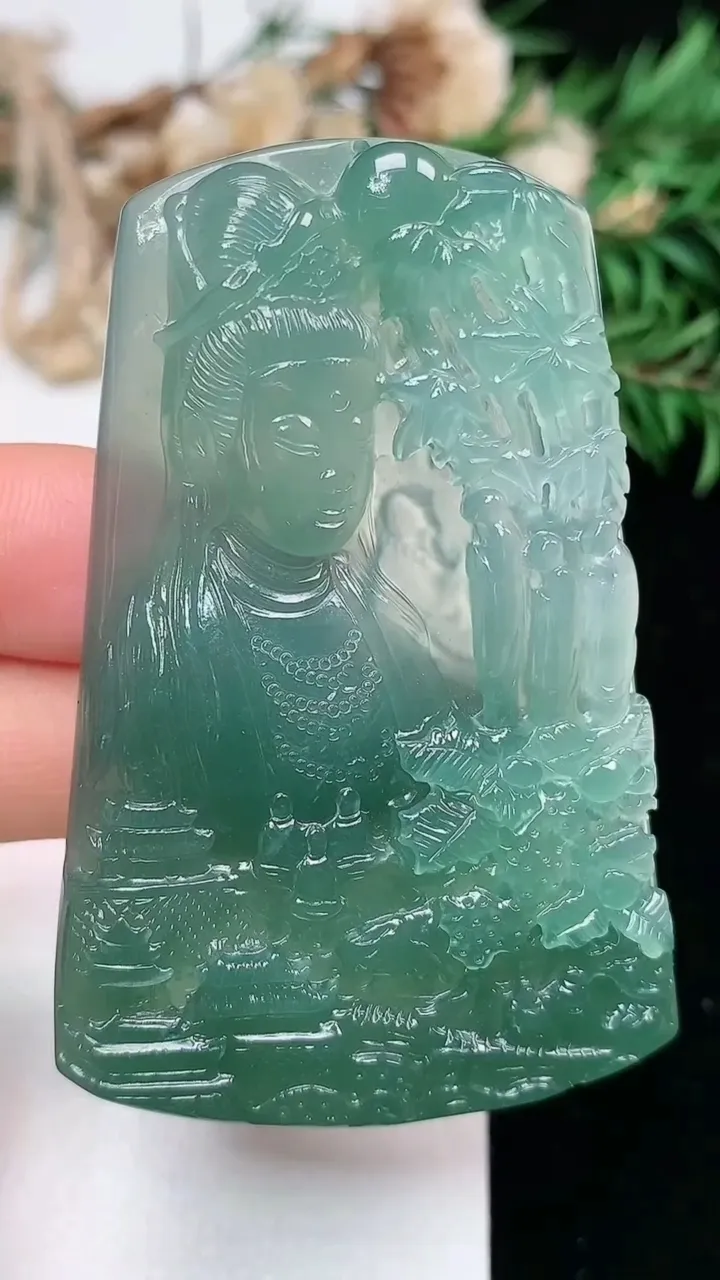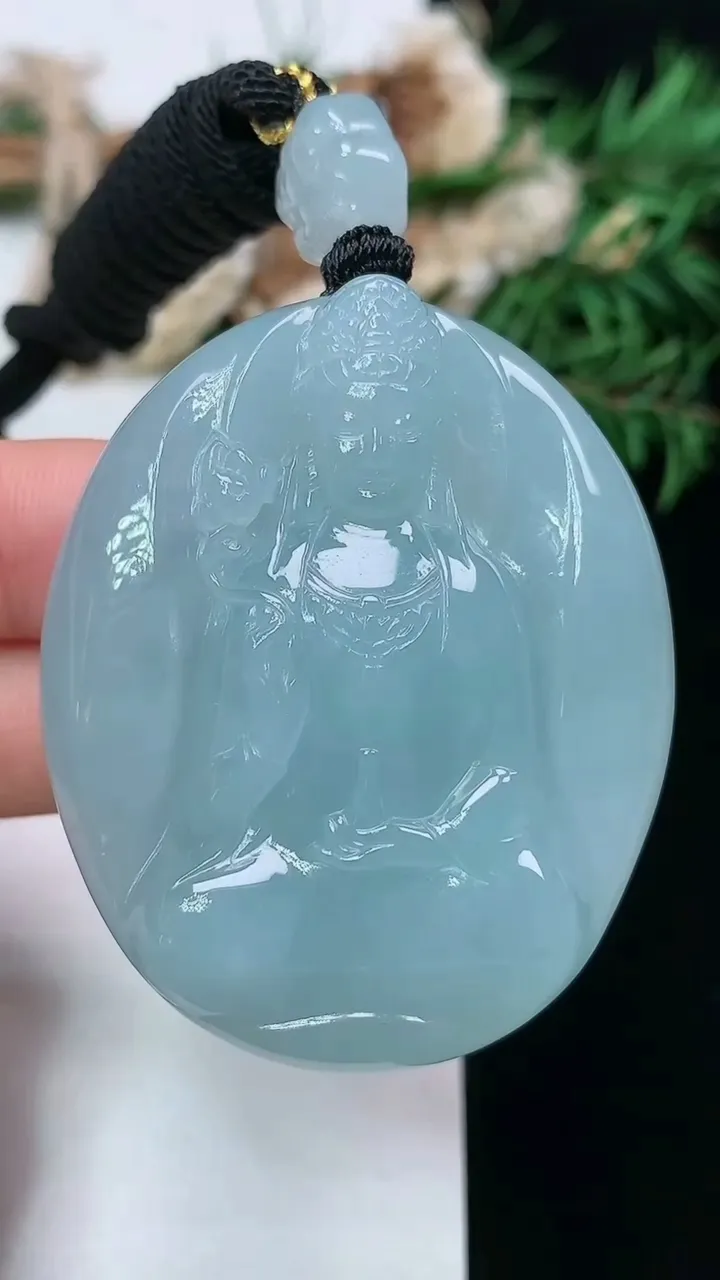 天然A货翡翠观音菩萨吊坠,尺寸51-10.5,重量:64.53g 1月16日