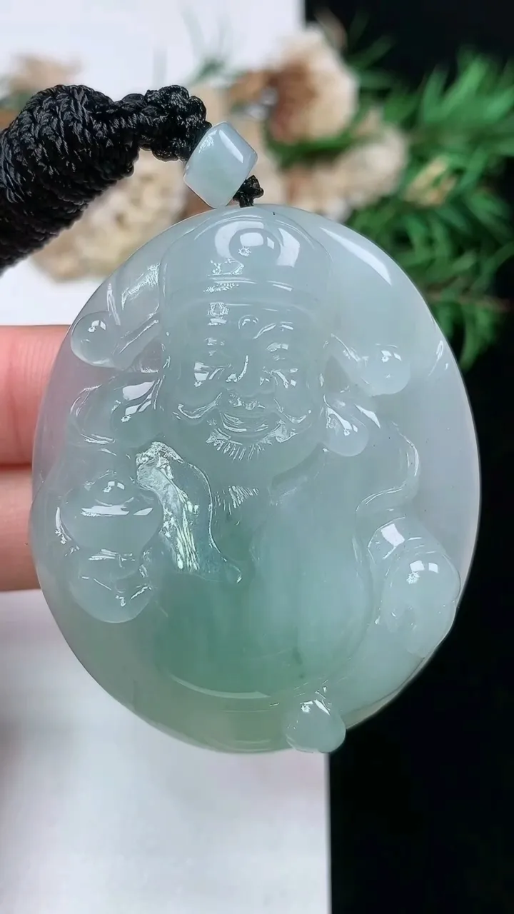 天然A货翡翠财神爷吊坠,尺寸50.6-41.9-12,重量:47.57g 1月16日